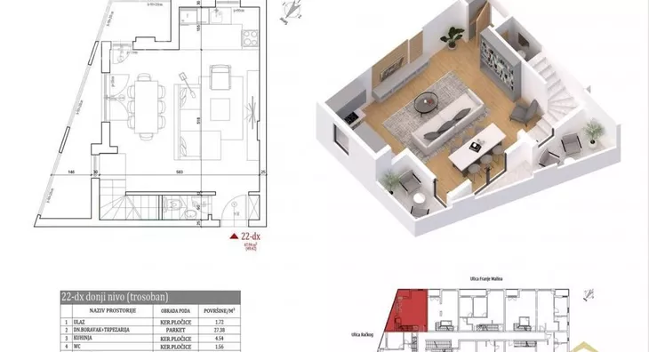- Opremljenost: Prazno - internet, interfon, klima, kanalizacija