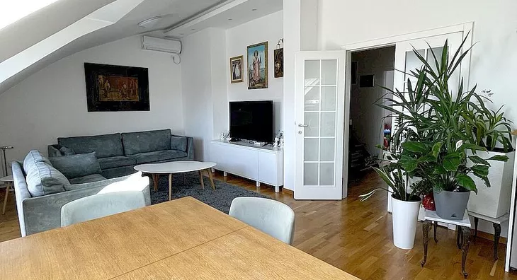 Novi Sad, PETROVARADIN, TROSOBAN/TROIPOSOBAN STAN, 73 m2, GARAŽA - nudimo vam odličan, moderno koncipiran stan u kvalitetnoj zgradi iz 2020. godine. U pitanju je dupleks, gde je samo ulaz na 4. spratu, a čitav stan se nalazi na etaži iznad, pod lučnim krovom. Izuzetno prostran, svetao, besprekorno održavan. Jedna spavaća soba lako može da se pregradi, i da dobijete dve vrlo korektne dečije sobe. Stan se prodaje SA KOMPLETNIM NAMEŠTAJEM I TEHNIKOM - sve novijeg datuma, prvoklsano, lepo uklopljeno. Postoji mogućnost kupovine GARAŽE od 17 m2, koja se nalazi u dvborištu zgrade.