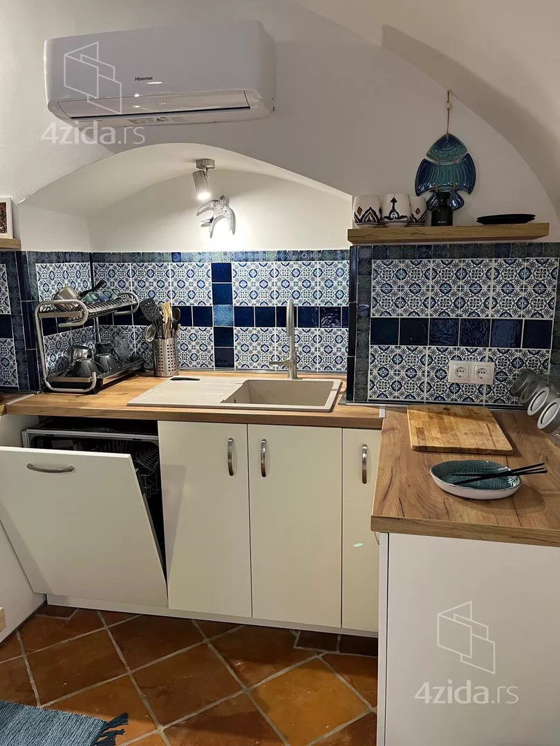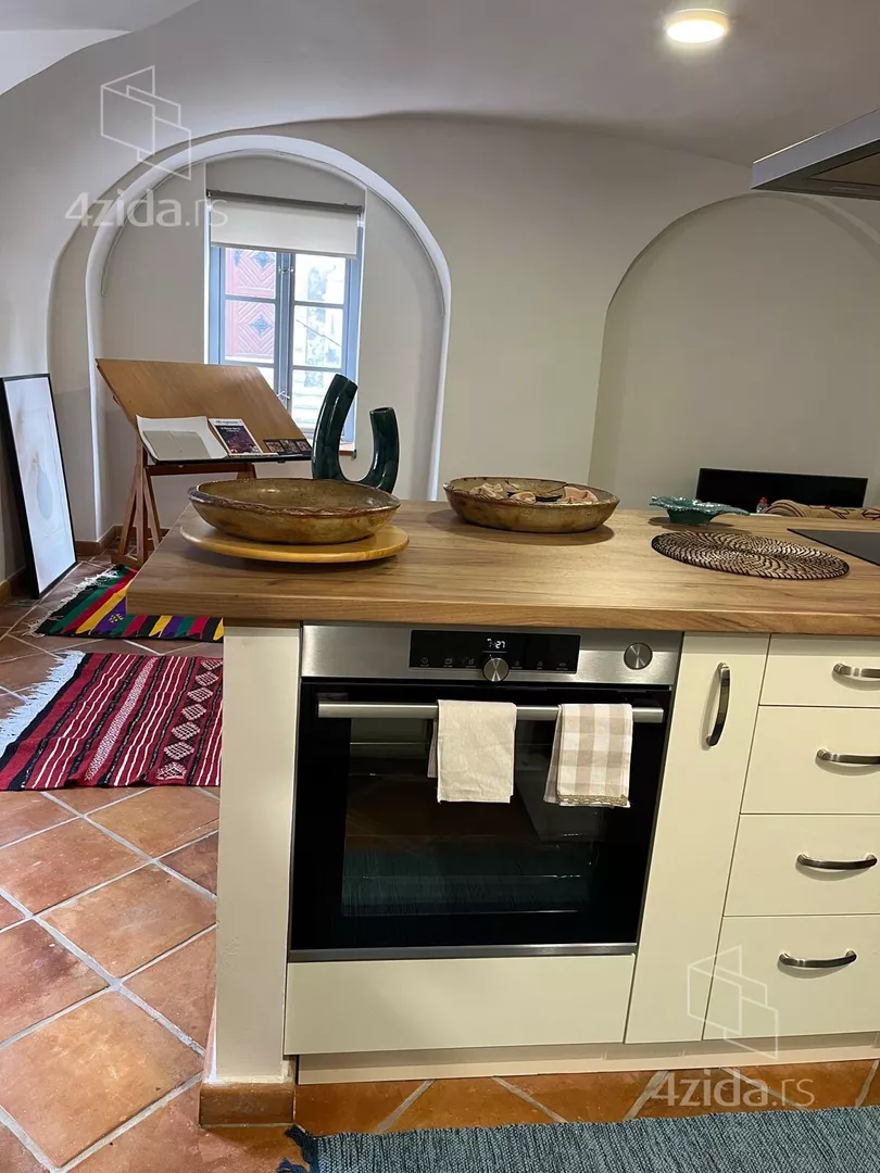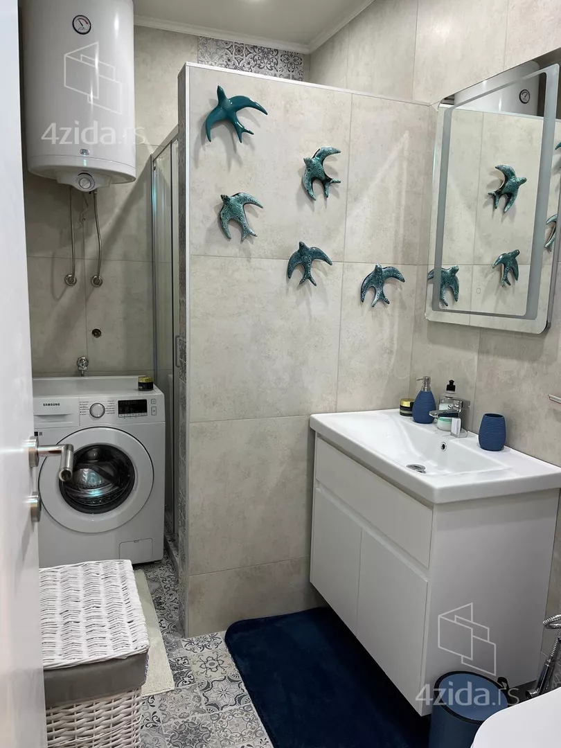 - Opremljenost: Namešteno - TV, klima, veš mašina, kuhinjski elementi, sudo mašina, frižider, zamrzivač, mikrotalasna rerna, šporet, rerna, ležaj, plakar, ugradni plakar