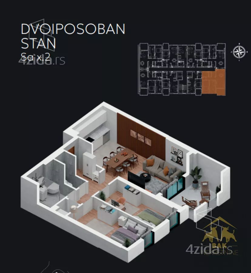 Predstavljamo Vam dvoiposoban stan u srcu Podbare, jedne od najautentičnijih i najbrže rastućih gradskih četvrti, gradi se moderan stambeni kompleks koji spaja udobnost, funkcionalnost i savremeni način života. U ponudi je stan u izgradnji, smešten u mirnom, ali odlično povezanom okruženju – idealan za porodičan život, ali i za one koji vole gradski puls. Kompleks je pažljivo osmišljen da zadovolji sve potrebe savremenog stanovanja. Obezbeđeno je obilje parking mesta, a tu su i uređeno dečije igralište, vrtić, kao i marketi, apotekе, restorani, kafići i fitnes centar – sve na nekoliko koraka od vašeg doma. Dodatna prednost je izuzetna lokacija – na samo par minuta hoda od Beogradskog keja, jednog od najlepših šetališta u Novom Sadu, idealnog za jutarnje trčanje, večernje šetnje ili opuštanje uz reku. Stanovi se grade prema najvišim standardima, uz upotrebu kvalitetnih materijala, sa akcentom na udobnost, svetlost i funkcionalnu organizaciju prostora. Ovo nije samo mesto za stanovanje – ovo je prostor u kojem možete živeti punim plućima.