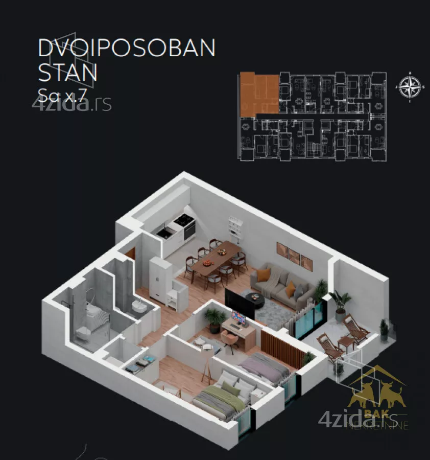 Predstavljamo Vam dvoiposoban stan u srcu Podbare, jedne od najautentičnijih i najbrže rastućih gradskih četvrti, gradi se moderan stambeni kompleks koji spaja udobnost, funkcionalnost i savremeni način života. U ponudi je stan u izgradnji, smešten u mirnom, ali odlično povezanom okruženju – idealan za porodičan život, ali i za one koji vole gradski puls. Kompleks je pažljivo osmišljen da zadovolji sve potrebe savremenog stanovanja. Obezbeđeno je obilje parking mesta, a tu su i uređeno dečije igralište, vrtić, kao i marketi, apotekе, restorani, kafići i fitnes centar – sve na nekoliko koraka od vašeg doma. Dodatna prednost je izuzetna lokacija – na samo par minuta hoda od Beogradskog keja, jednog od najlepših šetališta u Novom Sadu, idealnog za jutarnje trčanje, večernje šetnje ili opuštanje uz reku. Stanovi se grade prema najvišim standardima, uz upotrebu kvalitetnih materijala, sa akcentom na udobnost, svetlost i funkcionalnu organizaciju prostora. Ovo nije samo mesto za stanovanje – ovo je prostor u kojem možete živeti punim plućima.