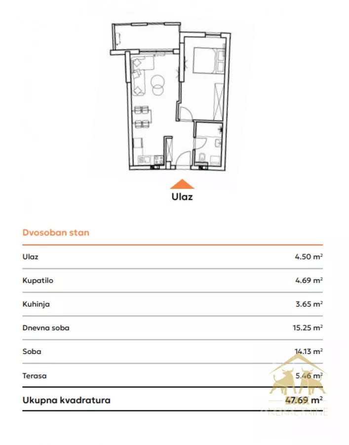 Dvosoban stan na prodaju, Podbara, 139.315€, 45m²