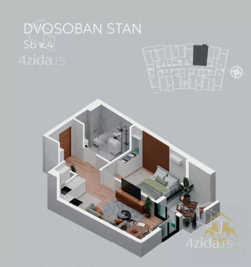 Predstavljamo Vam dvosoban stan u srcu Podbare, jedne od najautentičnijih i najbrže rastućih gradskih četvrti, gradi se moderan stambeni kompleks koji spaja udobnost, funkcionalnost i savremeni način života. U ponudi je stan u izgradnji, smešten u mirnom, ali odlično povezanom okruženju – idealan za porodičan život, ali i za one koji vole gradski puls. Kompleks je pažljivo osmišljen da zadovolji sve potrebe savremenog stanovanja. Obezbeđeno je obilje parking mesta, a tu su i uređeno dečije igralište, vrtić, kao i marketi, apotekе, restorani, kafići i fitnes centar – sve na nekoliko koraka od vašeg doma. Dodatna prednost je izuzetna lokacija – na samo par minuta hoda od Beogradskog keja, jednog od najlepših šetališta u Novom Sadu, idealnog za jutarnje trčanje, večernje šetnje ili opuštanje uz reku. Stanovi se grade prema najvišim standardima, uz upotrebu kvalitetnih materijala, sa akcentom na udobnost, svetlost i funkcionalnu organizaciju prostora. Ovo nije samo mesto za stanovanje – ovo je prostor u kojem možete živeti punim plućima.