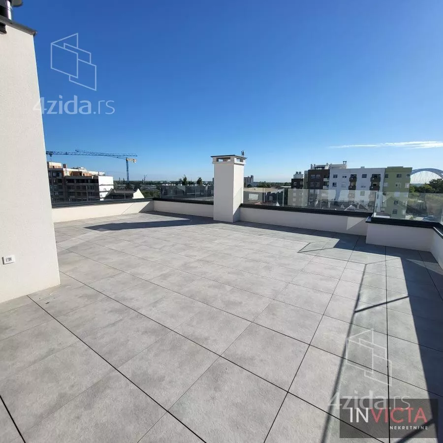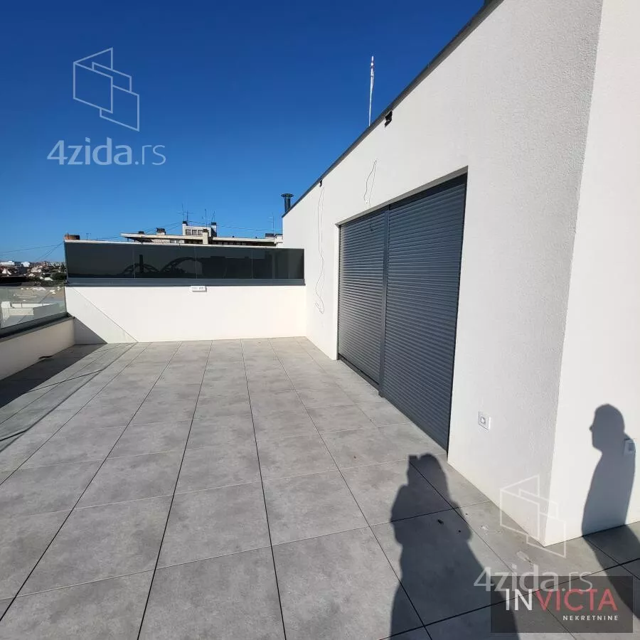 Pravi porodični lusuzan stan za uživanje, u dva nivoa, odlično lokacijski pozicioniran, na svega 5 min.laganog hoda od centra grada, pešačke zone, i dunavskog keja, takođe saobraćajno odlično povezan. Nalazi se u novoizgrađenom, veoma kvalitetnom stambenom objektu sa manjim brojem stanova. Na prvom nivou stana se nalaze, u odvojenom spavaćem delu, tri komforne spavaće sobe sa kupatilom i vešerajem, od kojih je jedna master, sa svojim kupatilom, Veliki dnevni boravak sa velikim staklenim portalima ka terasi u jednoj celini sa kuhinjom i trpezarijom. Na gornjoj etaži je veći studio, apartman sa kupatilom površine oko 40m2, sa vezom ka prelepoj krovnoj terasi površine nepunih 90m2 sa koje se pruža prelep panoramski pogled. Stan je opremljen najkvalitetnijom opremom (uvozna keramika velikog formata, spoljašnja stolarija je aluminijum-drvo, visina prostorija 3,10m). Objekat ima najvišu ocenu za energetsku efikasnost. Mogućnost kupovine garažnih mesta u suterenu objekta. U cenu je uključen PDV. Broj u Reg.posrednika:475.
