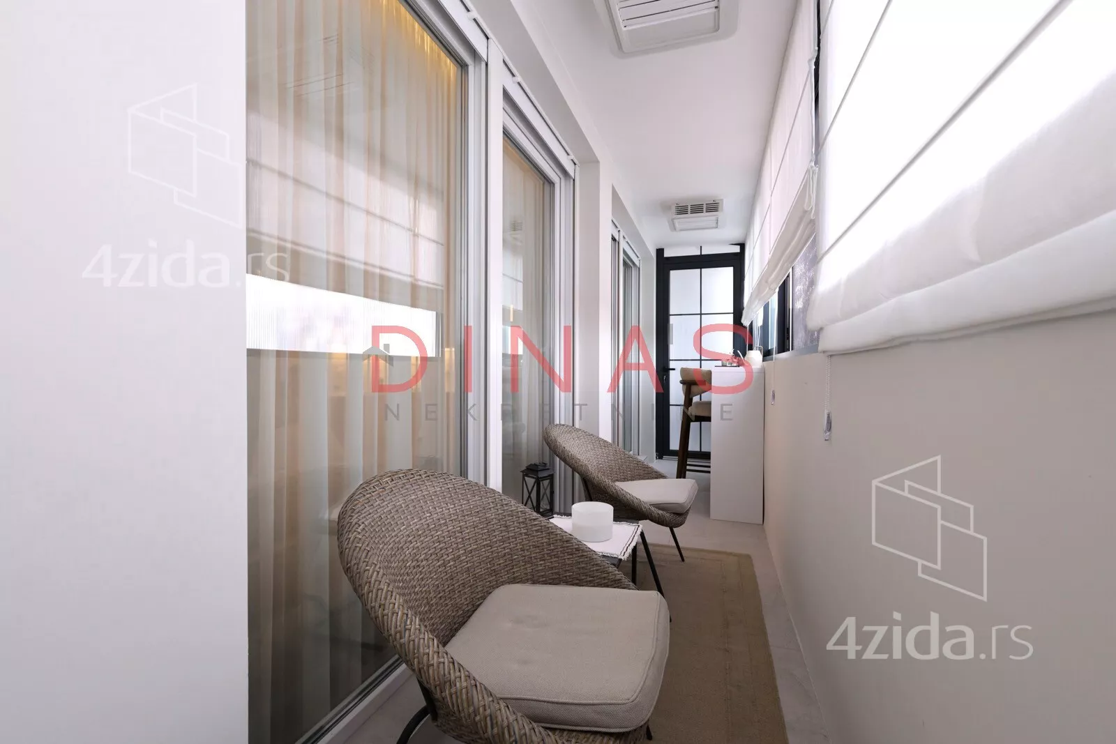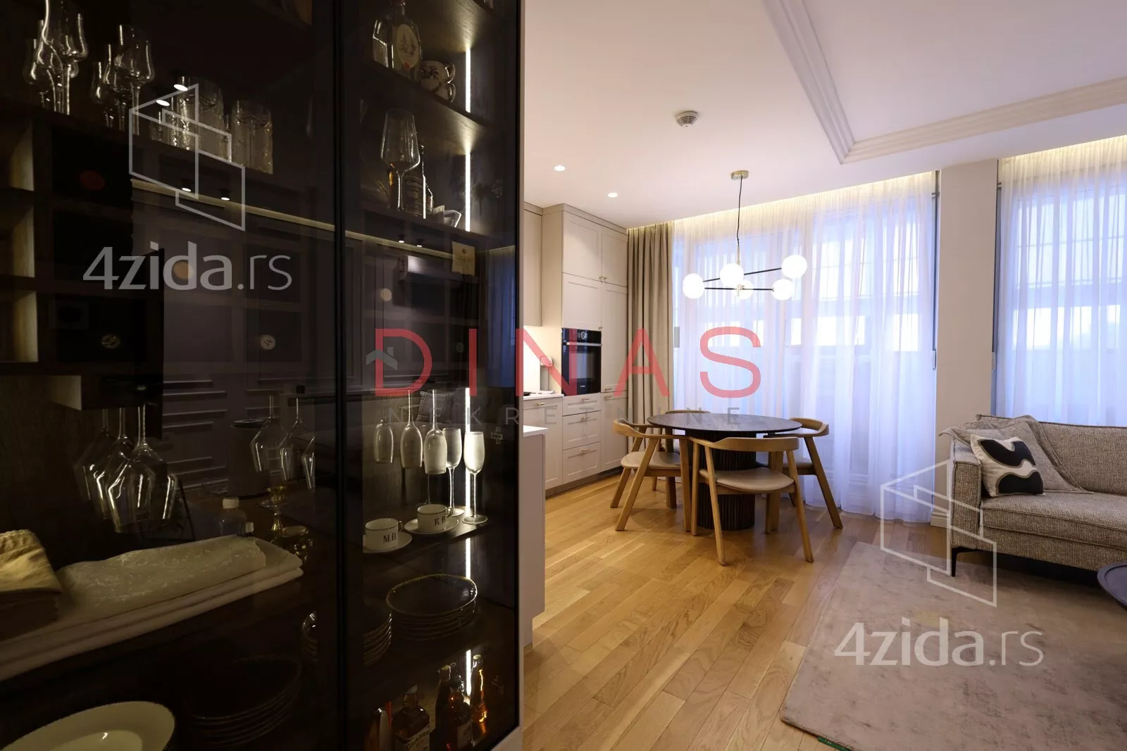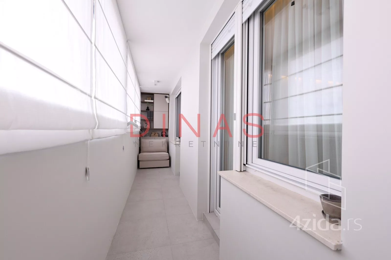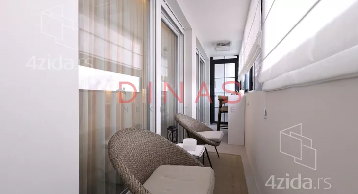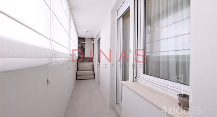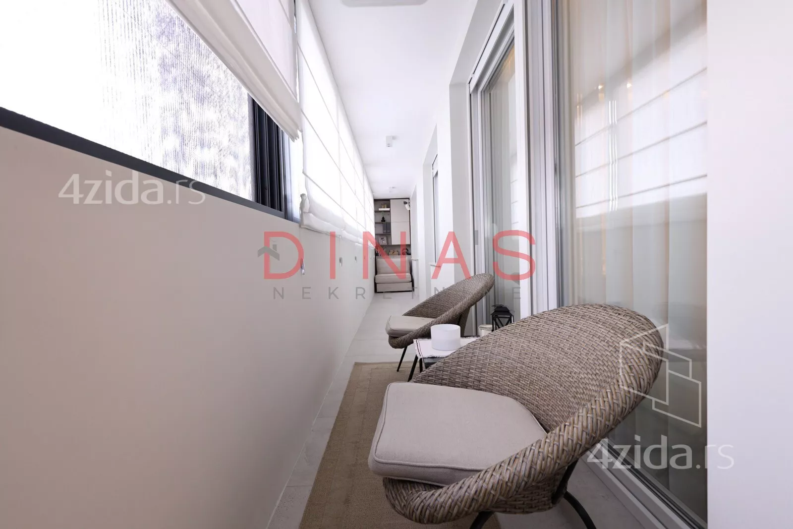 Trosoban po strukturi, veliki dnevni boravak sa trpezarijom i kuhinjom, dve spavaće sobe, kupatilo, toalet i terasa. Zgrada renomiranog investitora. Izuzetan kvalitet svih ugradnih materijala i opreme, sve rađeno po meri. Ugrađeni smart uređaji, sistem za PPZ i video nadzor. Grejanje na kalorimetre, izuzetno mali troškovi. Mogućnost kupovine garažnog mesta po ceni od 25.000€. U navedenu cenu je uključena agencijska naknada od 3%. Više informacija na tel: