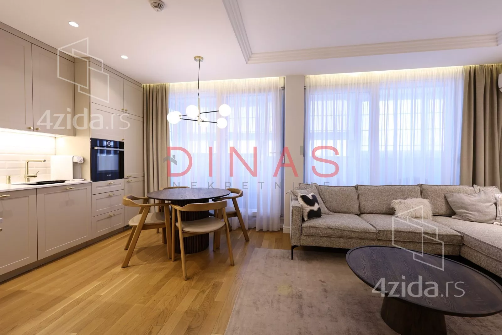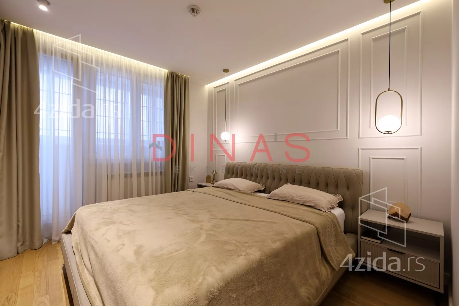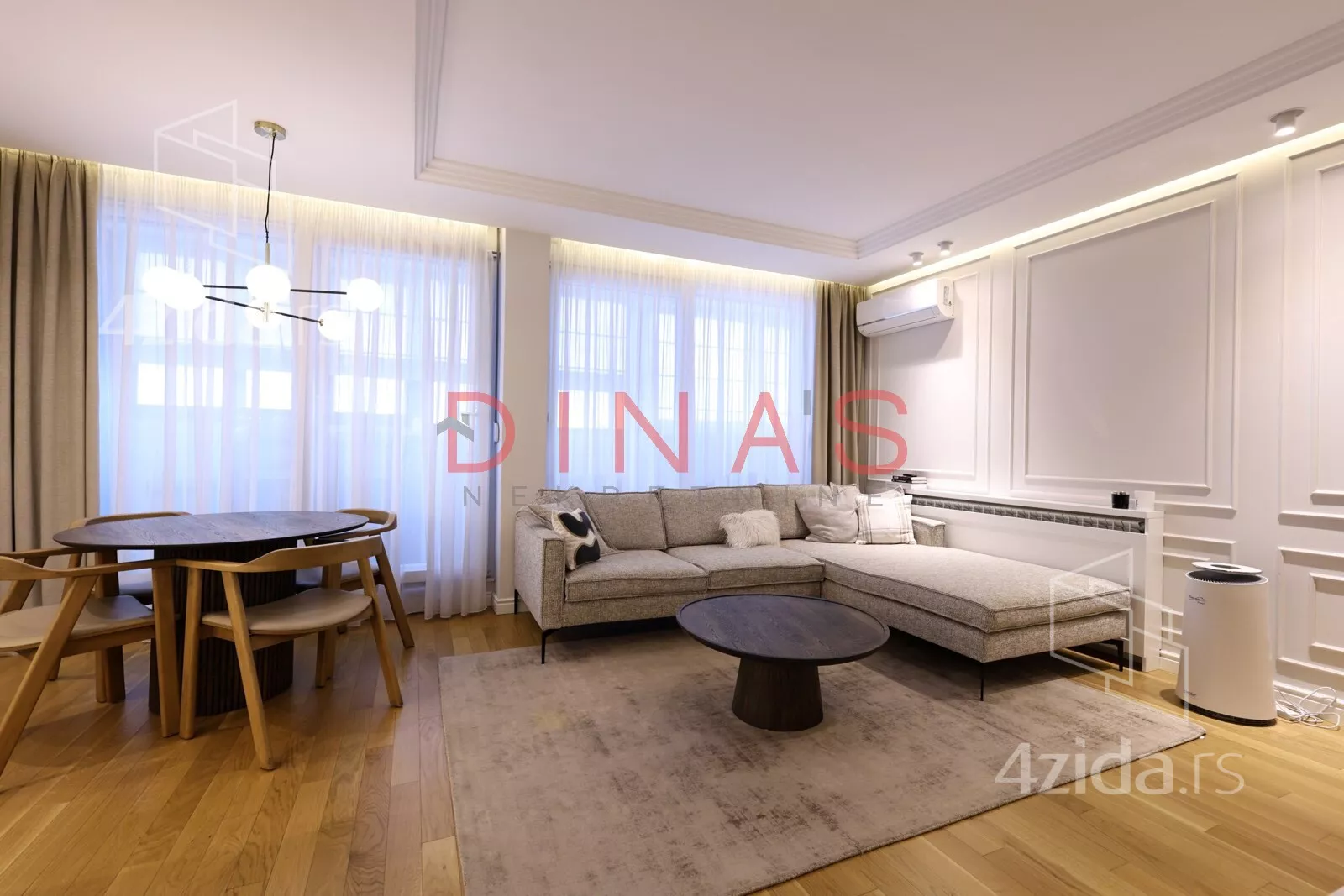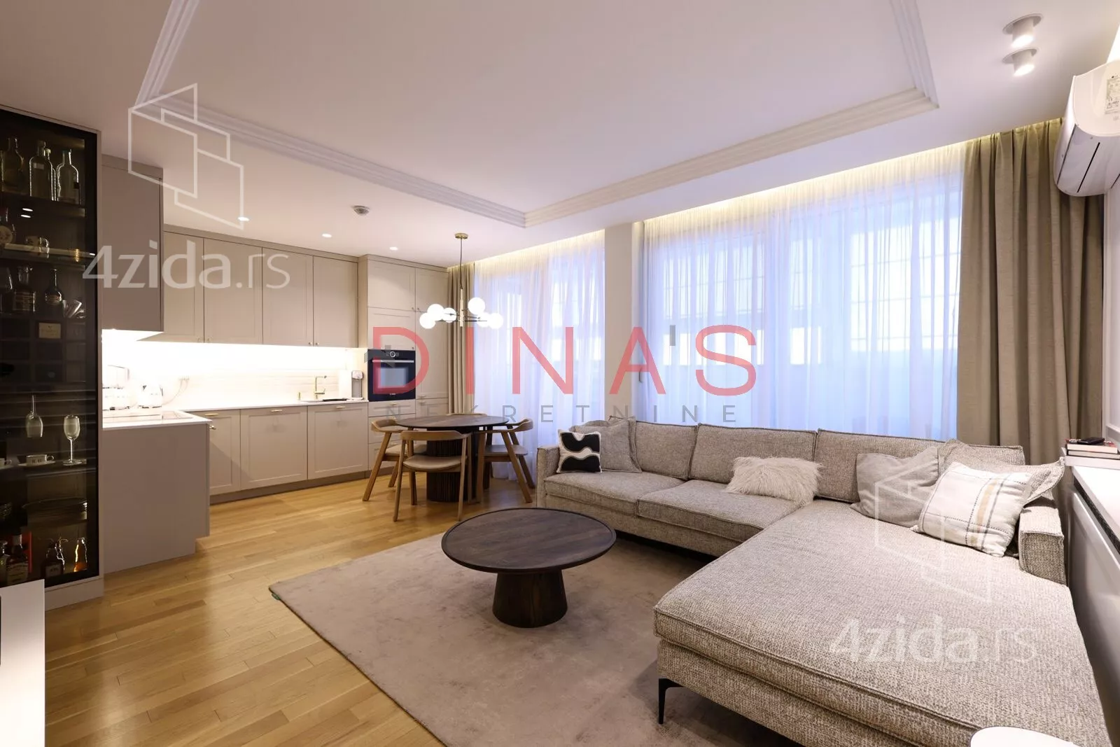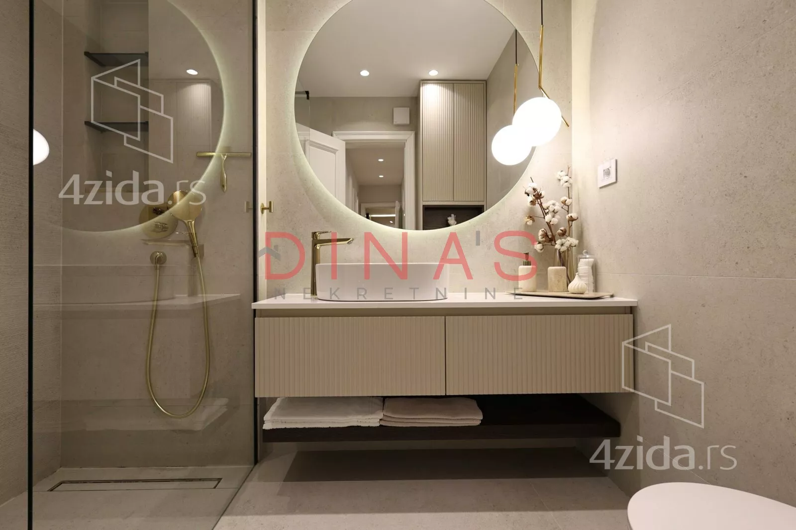Trosoban po strukturi, veliki dnevni boravak sa trpezarijom i kuhinjom, dve spavaće sobe, kupatilo, toalet i terasa. Zgrada renomiranog investitora. Izuzetan kvalitet svih ugradnih materijala i opreme, sve rađeno po meri. Ugrađeni smart uređaji, sistem za PPZ i video nadzor. Grejanje na kalorimetre, izuzetno mali troškovi. Mogućnost kupovine garažnog mesta po ceni od 25.000€. U navedenu cenu je uključena agencijska naknada od 3%. Više informacija na tel: