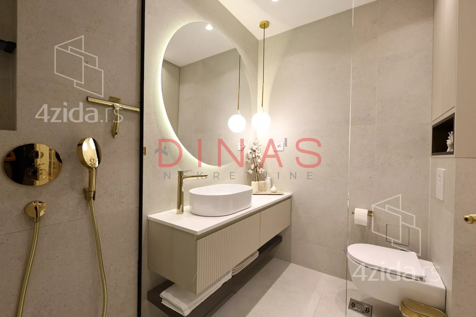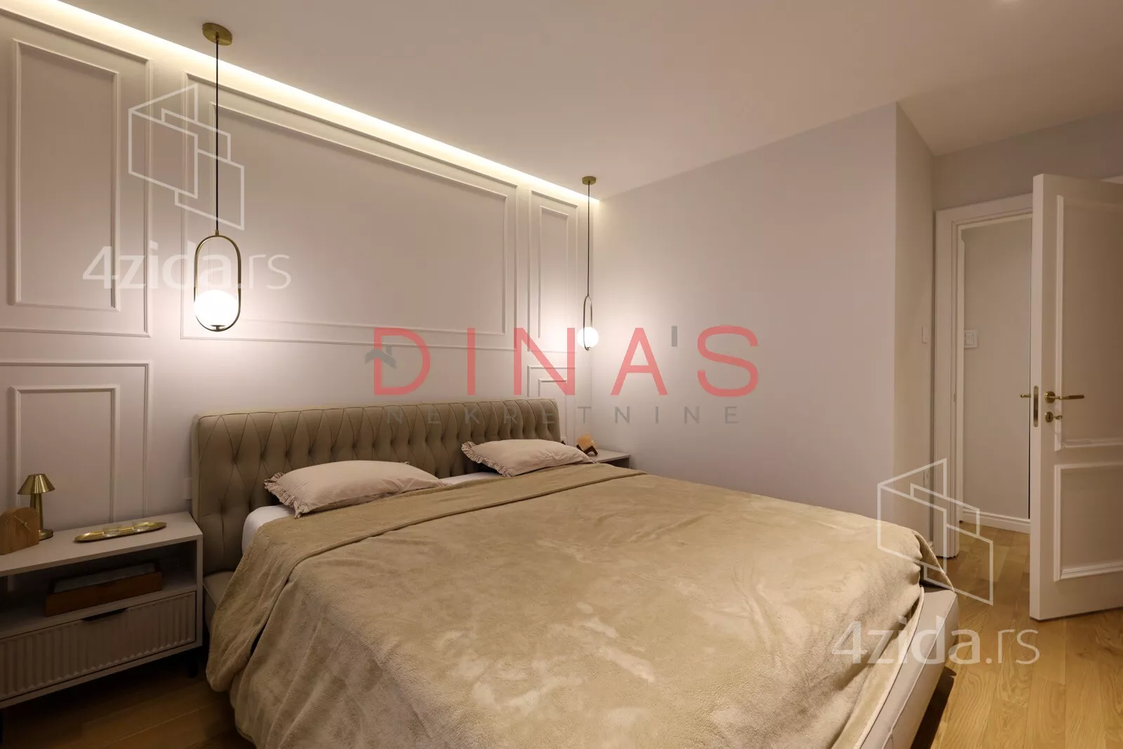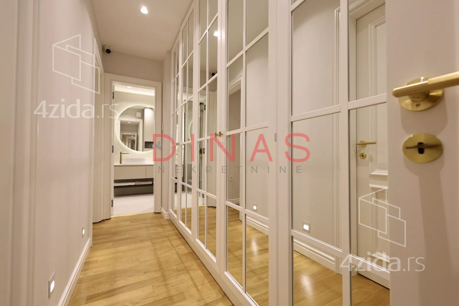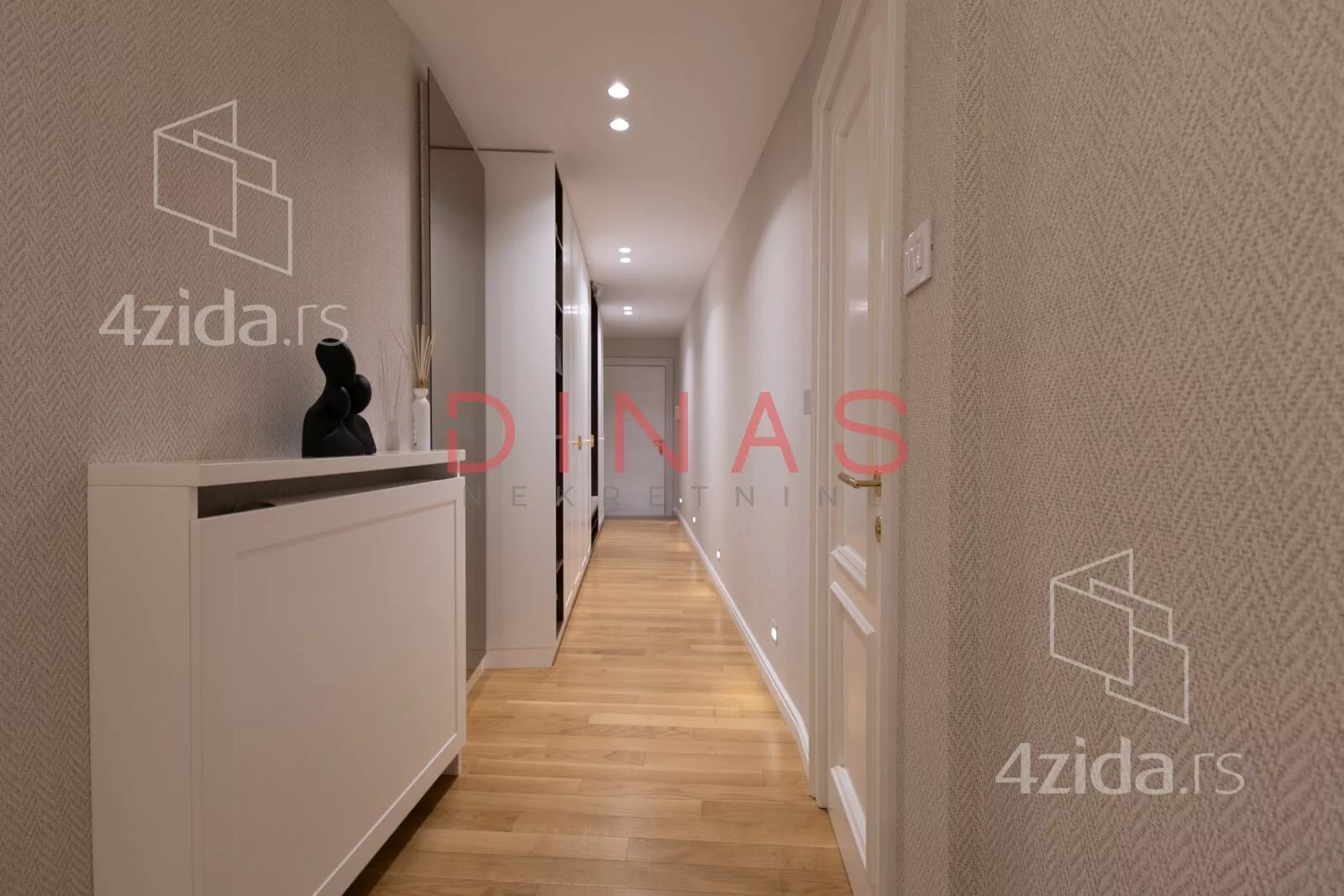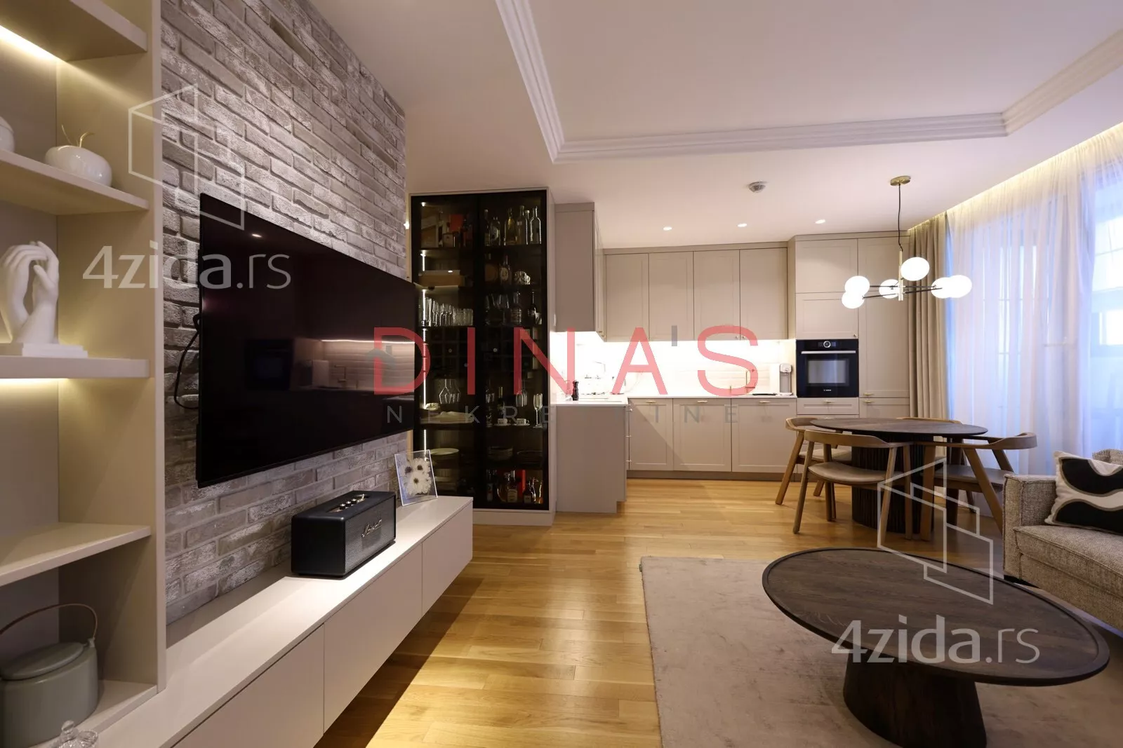 Trosoban po strukturi, veliki dnevni boravak sa trpezarijom i kuhinjom, dve spavaće sobe, kupatilo, toalet i terasa. Zgrada renomiranog investitora. Izuzetan kvalitet svih ugradnih materijala i opreme, sve rađeno po meri. Ugrađeni smart uređaji, sistem za PPZ i video nadzor. Grejanje na kalorimetre, izuzetno mali troškovi. Mogućnost kupovine garažnog mesta po ceni od 25.000€. U navedenu cenu je uključena agencijska naknada od 3%. Više informacija na tel: