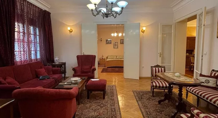 Prodajemo četvorosoban salonski stan, u centru Beograda, u Nušićevoj ulici, na drugom spratu predratne zgrade sa liftom i reprezentativnim mermernim ulazom.