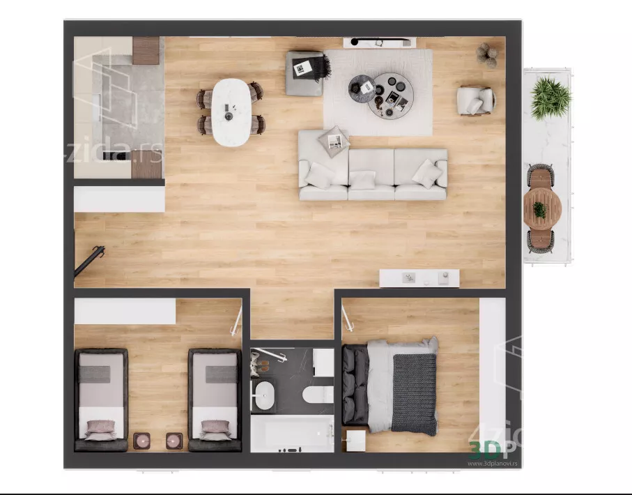 Kupovina ovog stana predstavlja ostvarenje sna za osobe koje vole miris prirode i direktan pogled na Dunav.