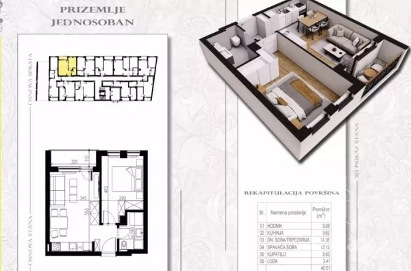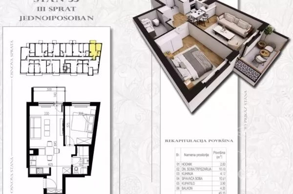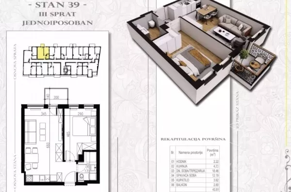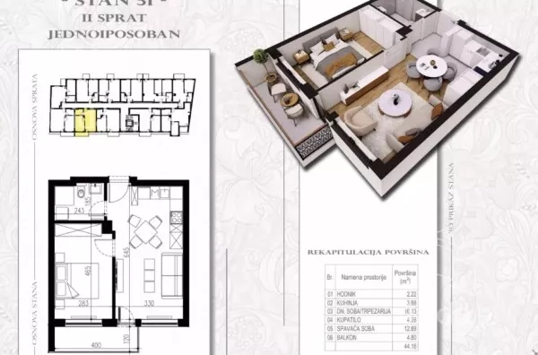 Dvosoban stan na prodaju, Radijalac, 63.800€, 41m²