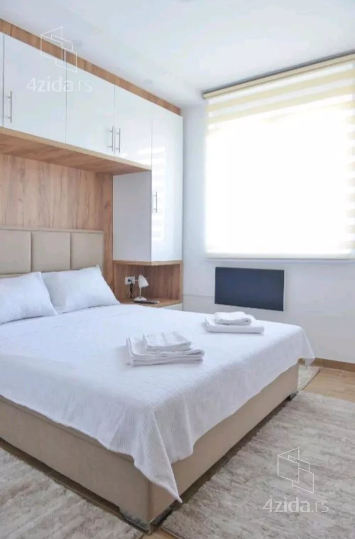 - Opremljenost: Namešteno - internet, TV, klima, veš mašina, kuhinjski elementi, frižider, šporet, rerna, ležaj, plakar, ugradni plakar