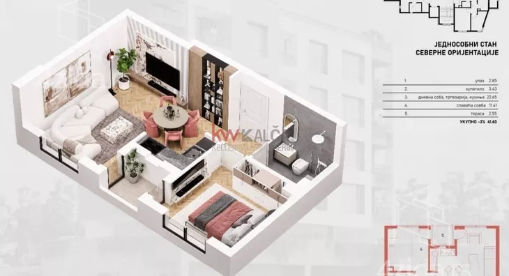 Cena stana od 41,60m2 iznosi 62.400 eur + PDV, odnosno 68.640 eur sa PDV - om. Useljivo na leto 2025. godine.