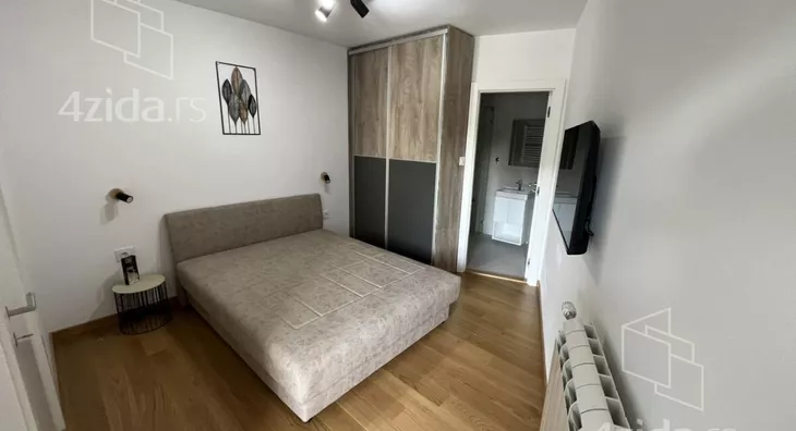 - Opremljenost: Namešteno - internet, interfon, TV, klima, veš mašina, sudo mašina, frižider, rerna, ležaj, plakar