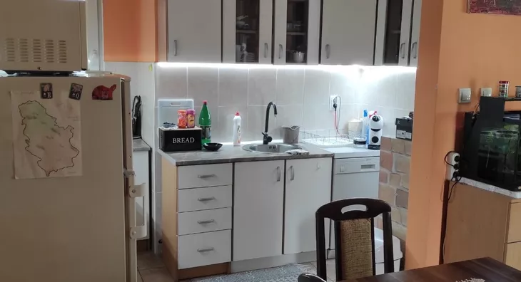 - Opremljenost: Polunamešteno - internet, klima, kuhinjski elementi, ugradni plakar