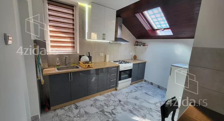 Stan se nalazi u novijoj zgradi na 4tom spratu. Zgrada je obložena fasadnom ciglom jako dobro izolovana i kvalitetna. Sveže renoviran opremljen i spreman za novog vlasnika. Iako je zadnji sprat nije klasičan krov koji je zastupljen u novijoj gradnji nego ima betonsku ploču. Podrumski prostor ogroman 7 kvadrata. Iza zgrade se nalazila garaza koja je bila oronula i urusila se, ja sam očistio tako da je sada ostalo parking mesto i čeka novog vlasnika da formira novu garažu. Kuhinja jela jagodina. Grejanje struja ili na drva kome kako odgovara. Uz njega ide klima, kuhinja, kuhinjski sto frižider i šporet. Ostalo od tehnike i nameštaja a vidljivo je na slikama ne ide. Odradjen je za svoje potrebe i ulozeno je puno novca. Prodaje se zbog odlaska u inostranstvo. Samo poziv na poruke ne odgovaram.