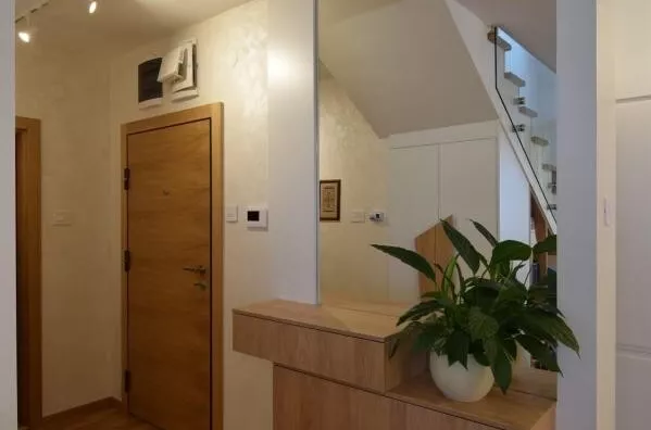 Strukturu stana na prvom nivou čine prostran dnevni boravak sa kuhinjom i trpezarijom, ostava, toalet i terasa.
