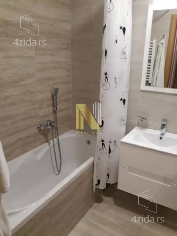 - Opremljenost: Namešteno - internet, TV, klima, veš mašina, sudo mašina, frižider, rerna, ležaj, plakar