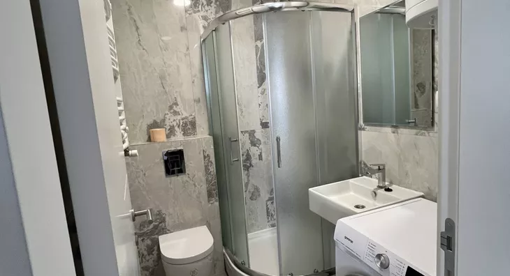 Poseduje dve spavaće sobe, dnevni boravak, izdvojenu kuhinju i trpezariju. Terasa sa pogledom na dvorište.