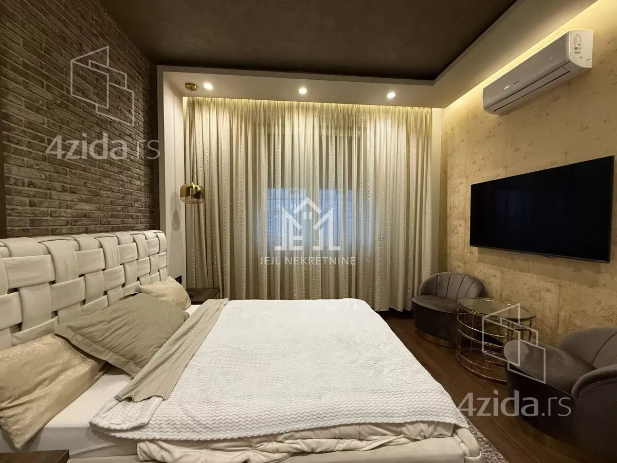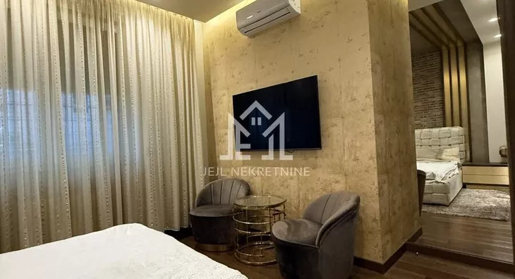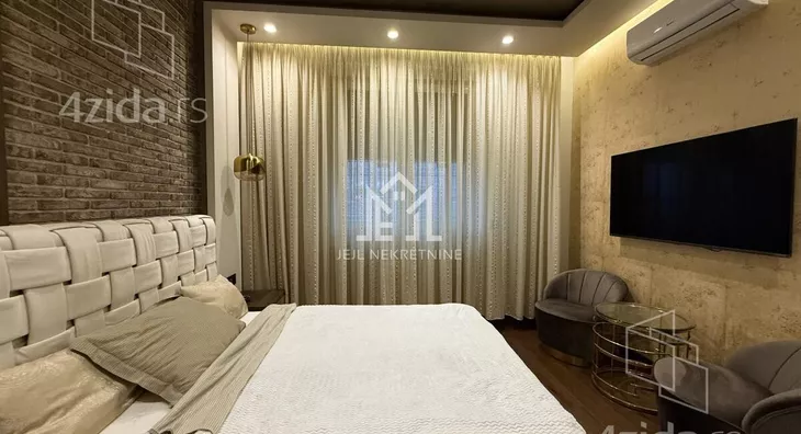 - Opremljenost: Namešteno - internet, interfon, TV, klima, veš mašina, sudo mašina, frižider, rerna, ležaj, plakar