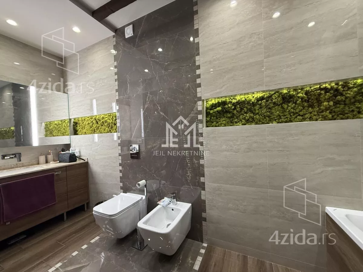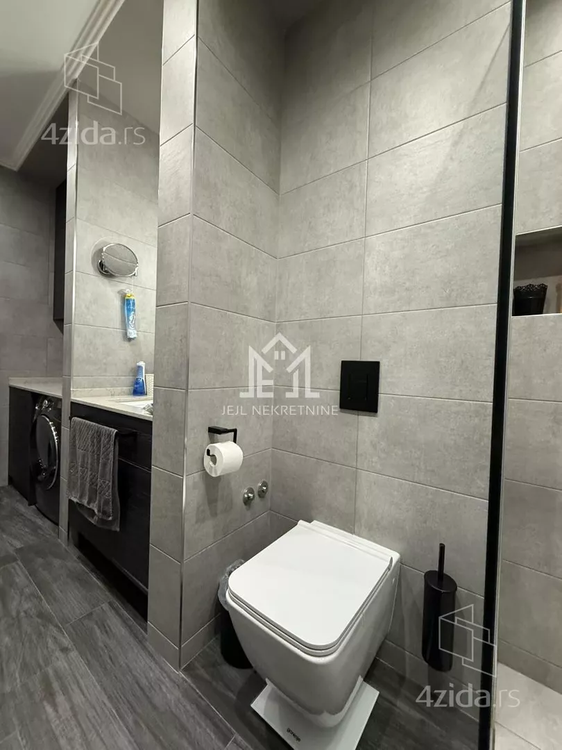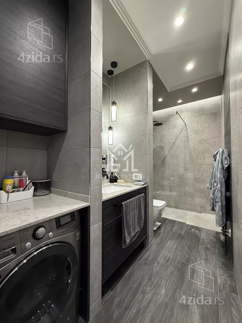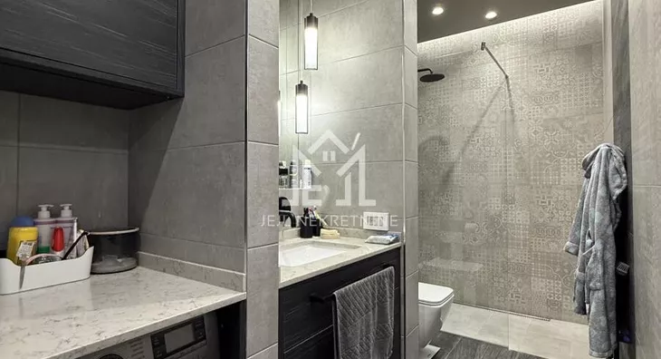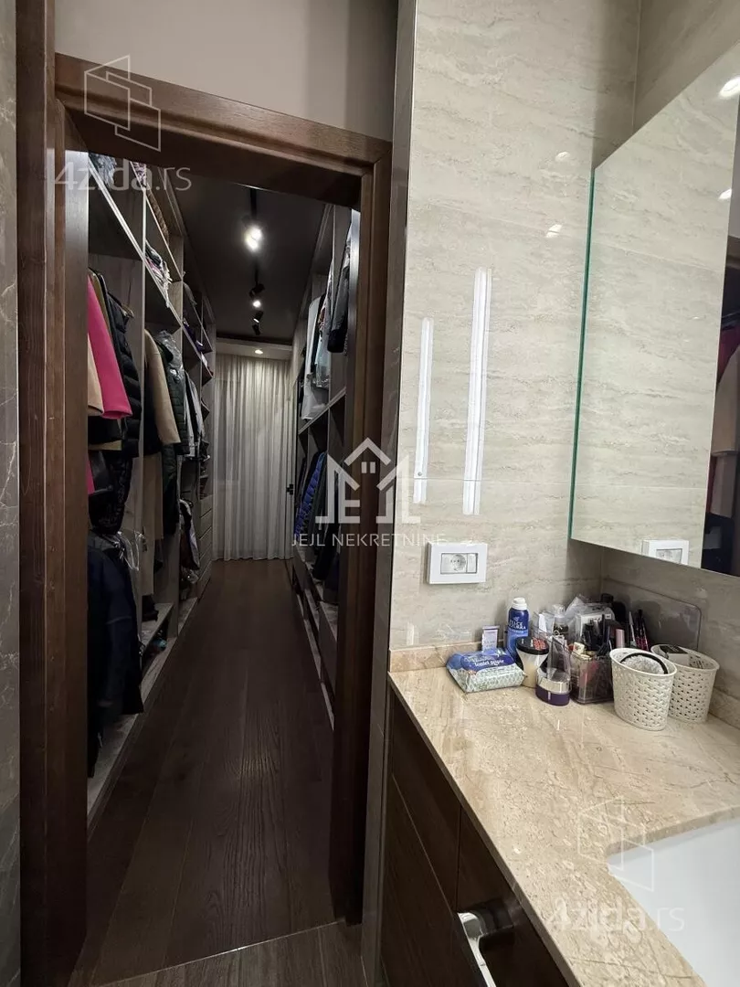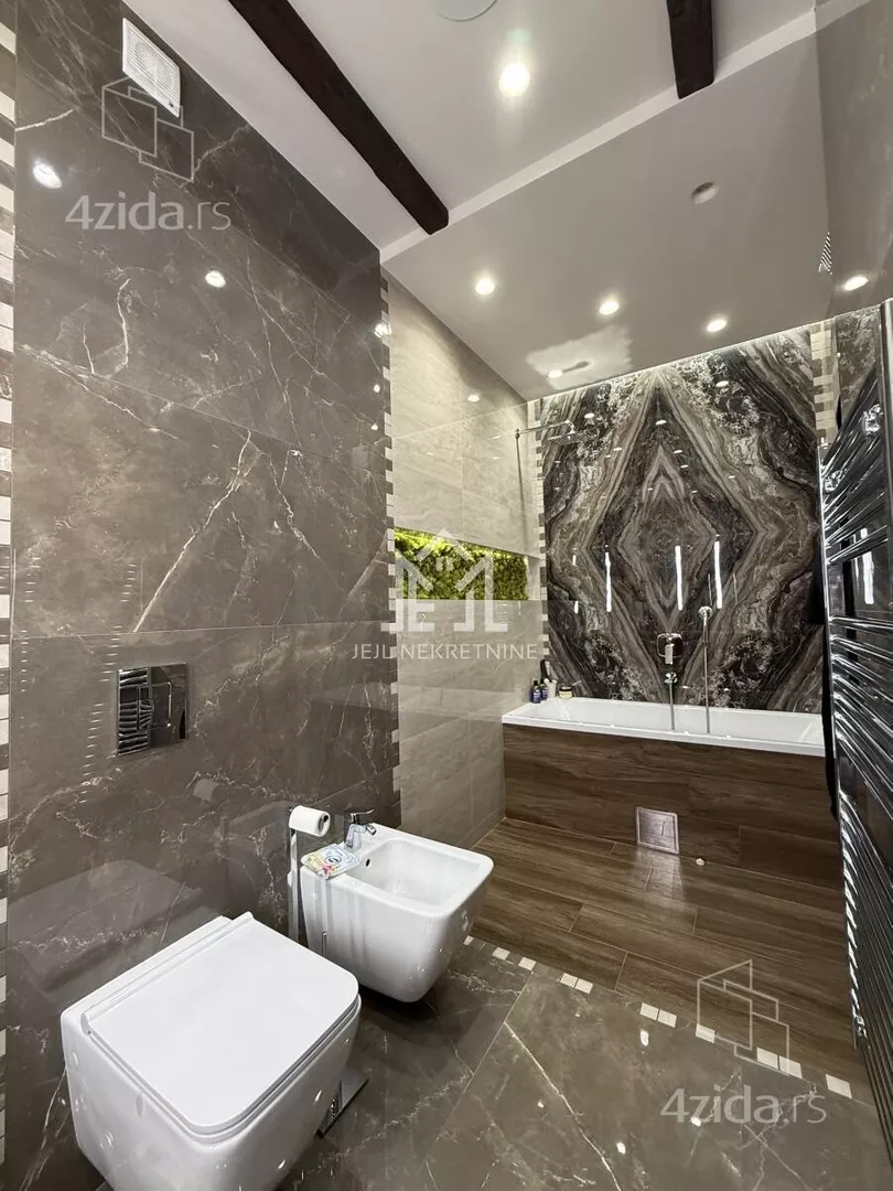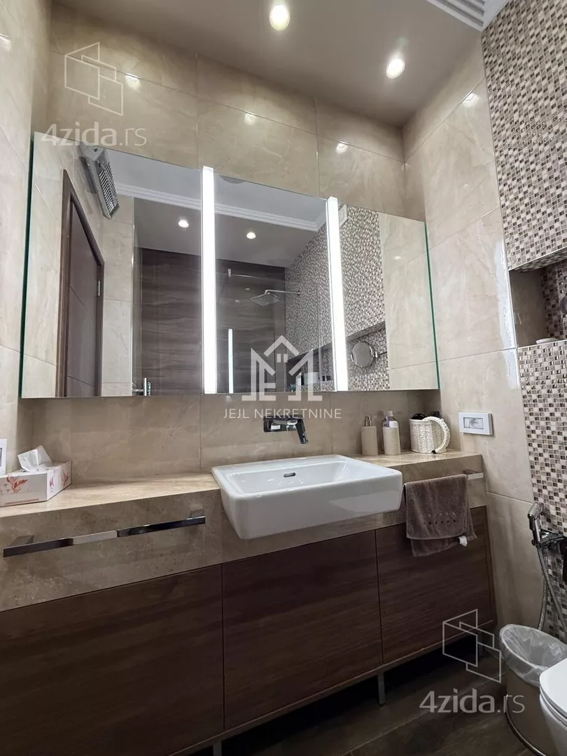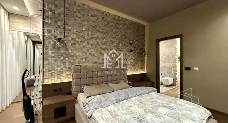Ulaskom u stan, s desne strane nalazi se prostrano i moderno kupatilo vrhunskog kvaliteta. Pravo iz hodnika ulazi se u spavaću sobu koja poseduje svoj garderober i sopstveno kupatilo, sa elegantnim pločicama i luksuznim sanitarijama.