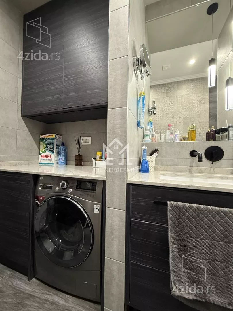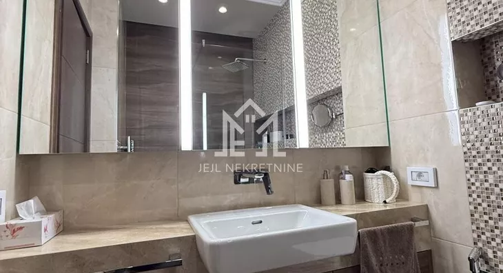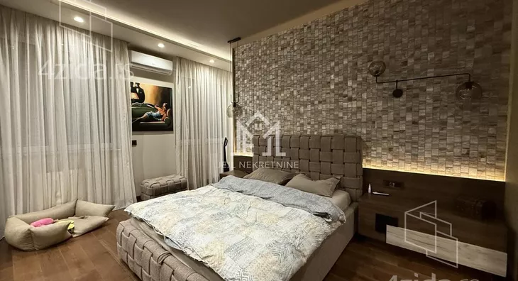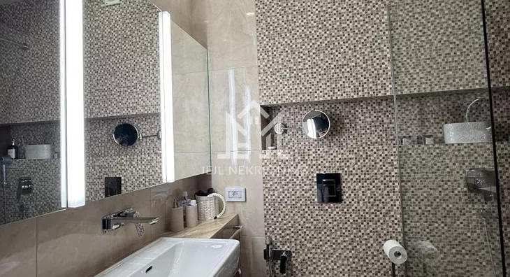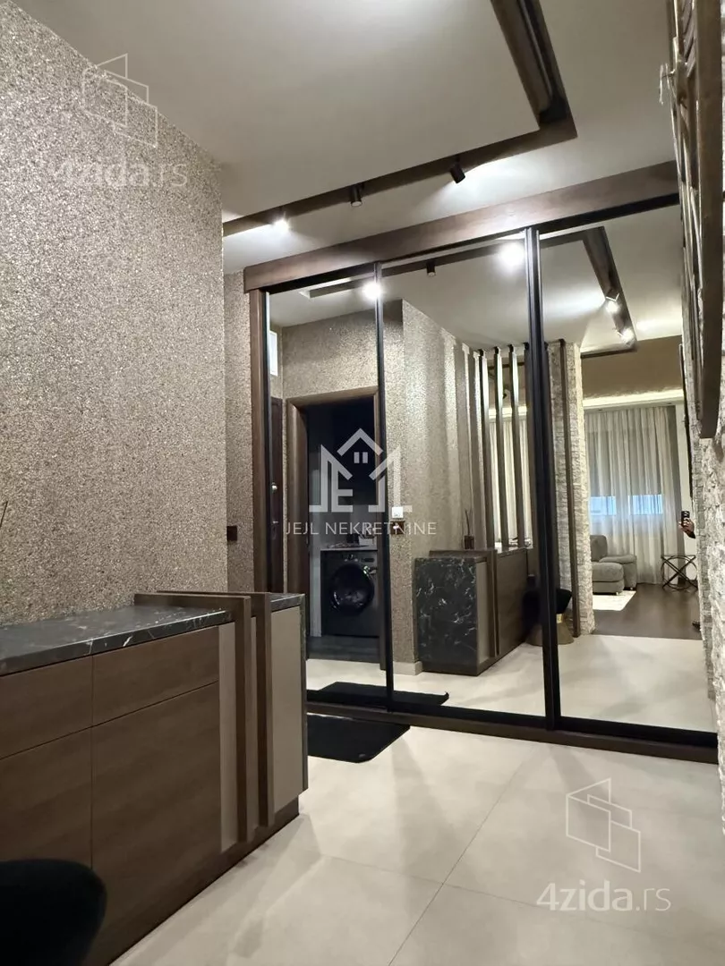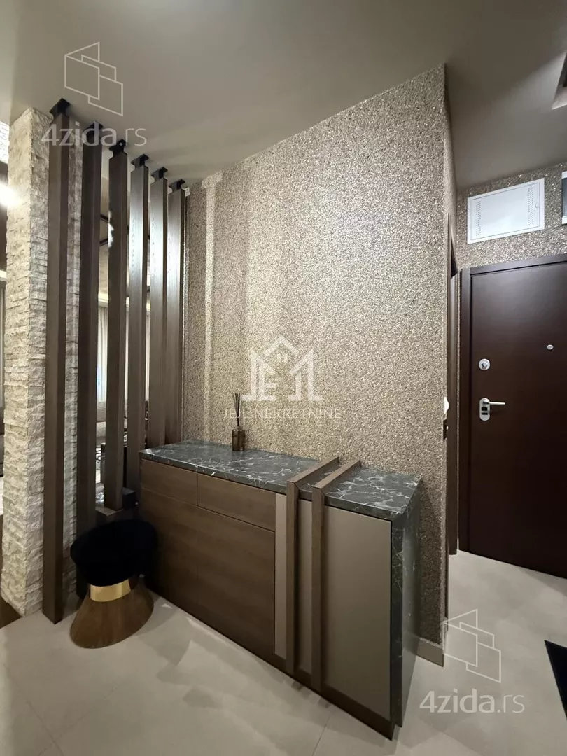 Stan se prodaje potpuno namešten, sa vrhunskim nameštajem izrađenim po meri, modernim rasvetnim telima i dekorima visokog kvaliteta. Sve u stanu — od podova, rasvete i stolarije, do najsitnijih detalja — rađeno je s namerom da traje i da impresionira.