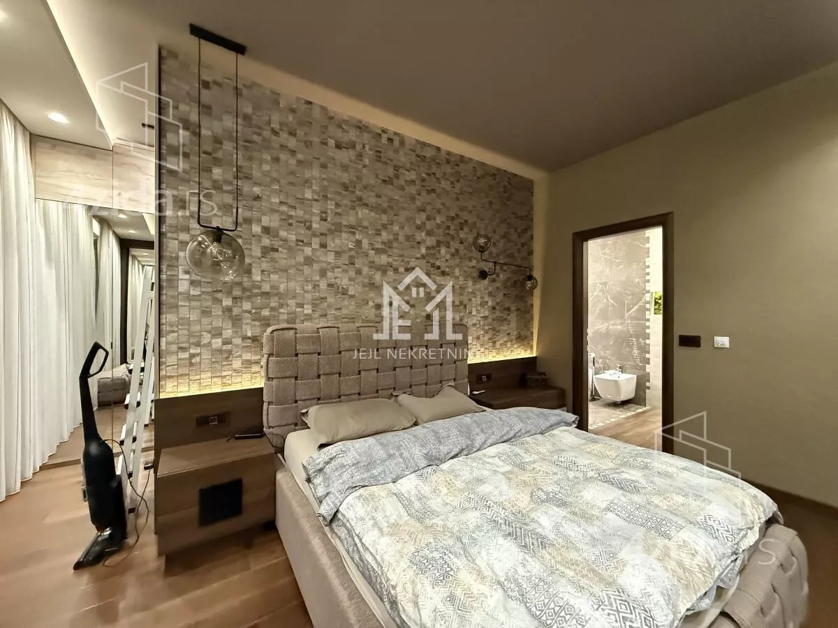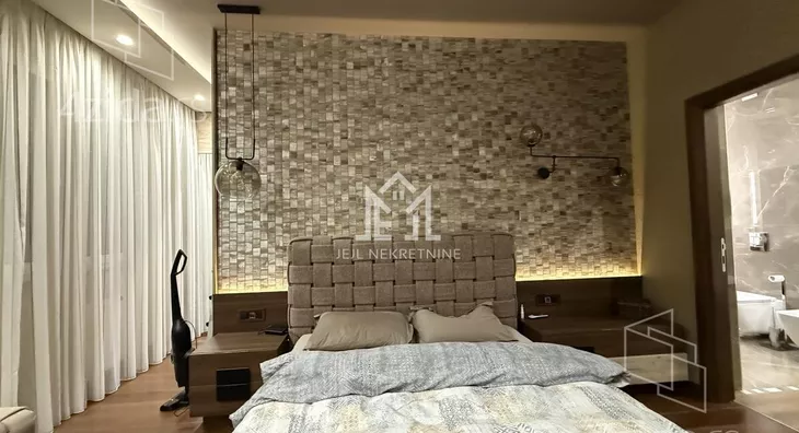 Iz dnevnog boravka ulazi se u bračnu spavaću sobu, čiji veliki garderober zauzima čitavu dužinu zida, dok kupatilo odiše posebnom atmosferom zahvaljujući prirodnoj mahovini u dekoru, što stvara doživljaj luksuznog spa ambijenta.