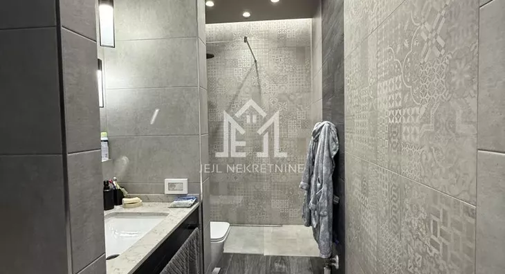 Stan je opremljen podnim grejanjem u kupatilima, aluminijumskom stolarijom najvišeg kvaliteta i roletnama na električno upravljanje, što dodatno doprinosi osećaju komfora i modernog luksuza. Zgrada je energetski efikasna, pa su računi tokom zime nešto viši, dok su leti izuzetno niski, zahvaljujući odličnoj izolaciji i pametno projektovanom sistemu hlađenja i grejanja.