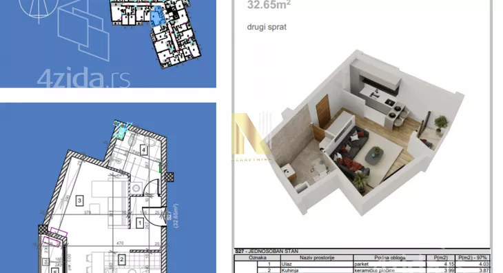 - Neto površina stana 32.65m2 -