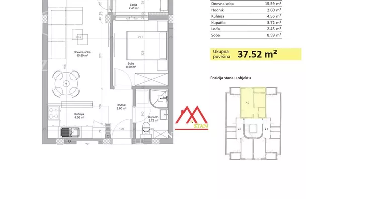 Stan je deo novogradnje, koja se gradi od najboljih, najsavremenijih materijala, što garantuje dugoročnu sigurnost i kvalitet. Zgrada će biti završena u martu 2026. godine, a vi možete rezervisati svoj prostor već sada.