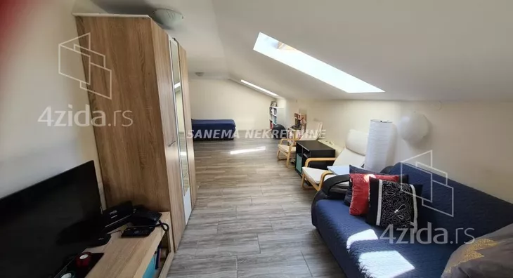 Prodaje se prostran stan od 63m2 na trećem spratu u zgradi bez lifta. Stan poseduje veliki i svetli dneni boravak sa trpezarijom i kuhinjom, spavaću sobu i veliko kupatilo. Kosine u stanu ne oduzimaju od veličine stana. Zgrada je novije gradnje, u dvorištu se nalazi parking mesto. Grejanje u zgradi je na toplotne pumpe, znatno je povoljnije od drugih načina grejanja. Podno grejanje, a leti mogućnost za hlađenjem, svaki stan ima svoj merač i stanari sami podešavaju grejanje i hlađenje. Stan ima svoj vodomer.