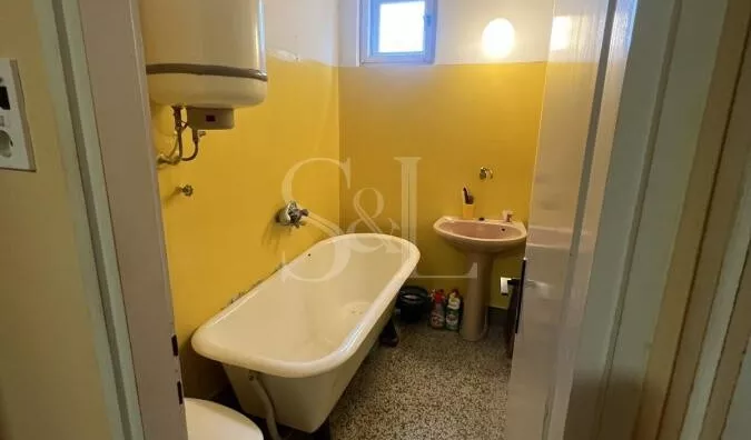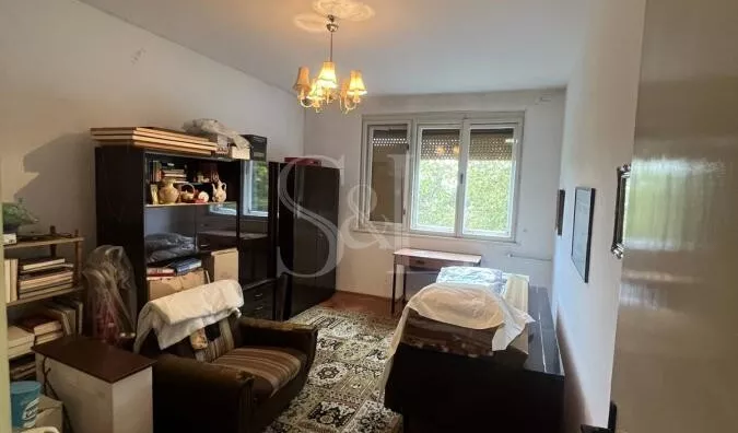 Stan poseduje dve sobe, hodnik, kupatilo, veliku kuhinju i terasu. Pripadajući podrum.Potrebna su izvesna ulaganja pred useljenje.