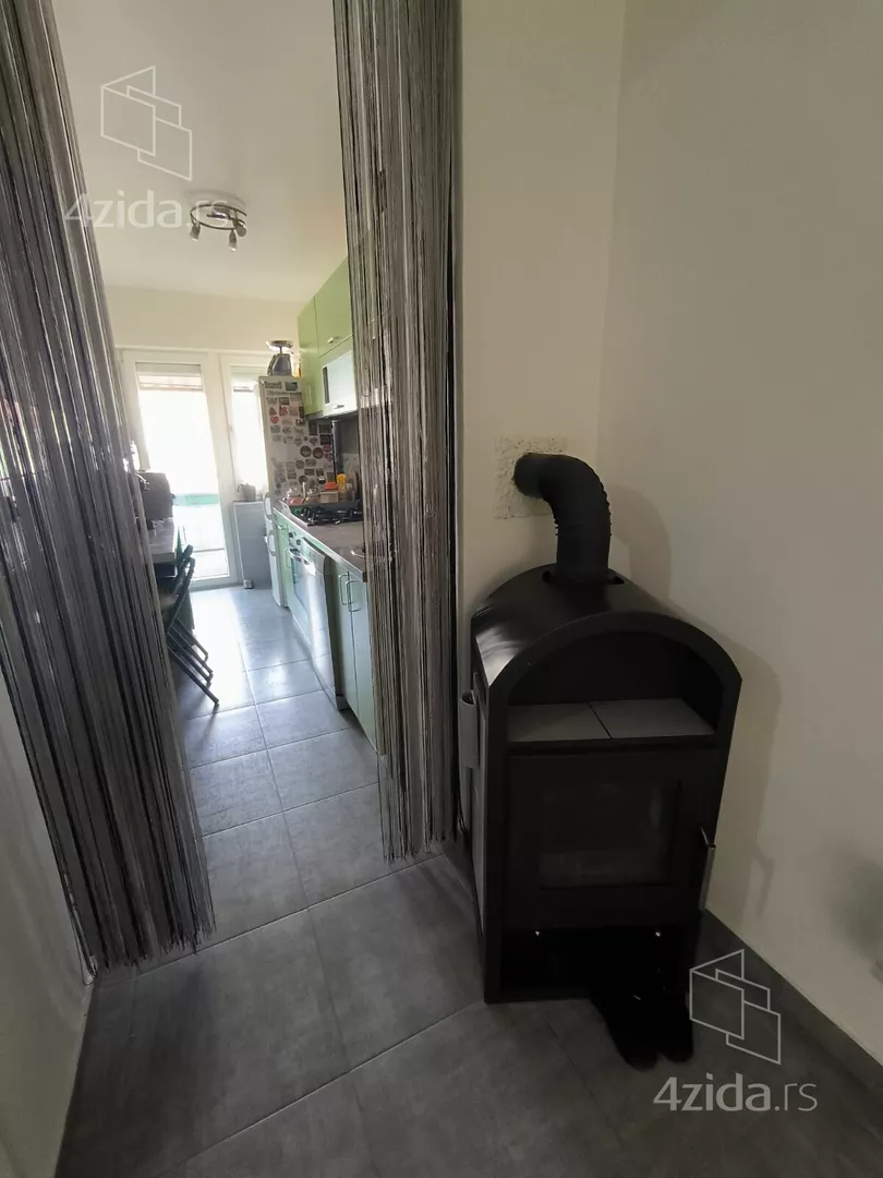 Stan je dvostrano orijentisan. Podovi su obloženi laminatom, postavljena je PVC stolarija sa roletnama. Stan ne poseduje centralno grejanje, trenutno se koristi klima uređaj, TA peć kao i peć na čvrsto gorivo.