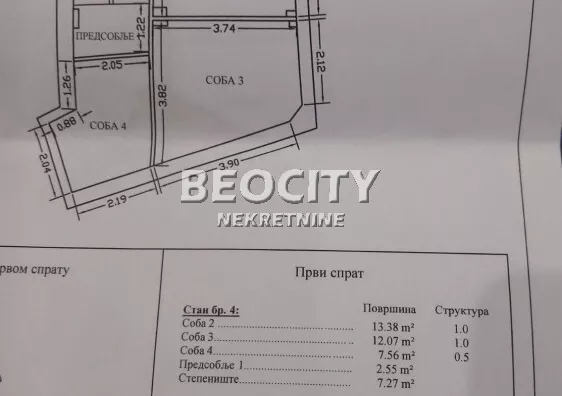 Agencijski ID: 118262, uknjižen, za renoviranje, tavan, deljiv. Na izuzetnoj lokaciji, u pešačkoj zoni ulice Strahinjića Bana, tik uz Skadarliju, prodaje se troetažni stan ukupne neto površine 116 m² (uknjiženo 87 m²). Stan u prizemlju raspolaže sa 37.58m² Stan na I spratu raspolaže sa 42.83m² Stan na II spratu raspolaže sa 36.51m² Osnovne karakteristike: • Troetažna struktura - izuzetna prilika za kreiranje apartmana ili hostela • Ulaz iz dvorišta zgrade - diskretno i praktično • Novo etažno grejanje i zamenjeni prozori • Stan je za renoviranje - prilika da ga prilagodite svojim potrebama i idejama Zgrada se nalazi u jednom od najživopisnijih delova Beograda, idealna za turistički biznis ili kao unikatan životni prostor. Više informacija na: http://www.beocitynekretnine.rs Agencijska provizija 2%. Telefoni: 060... (prikaži broj telefona) • 060... (prikaži broj telefona) • 011... (prikaži broj telefona) . Kontakt van radnog vremena: [email protected]