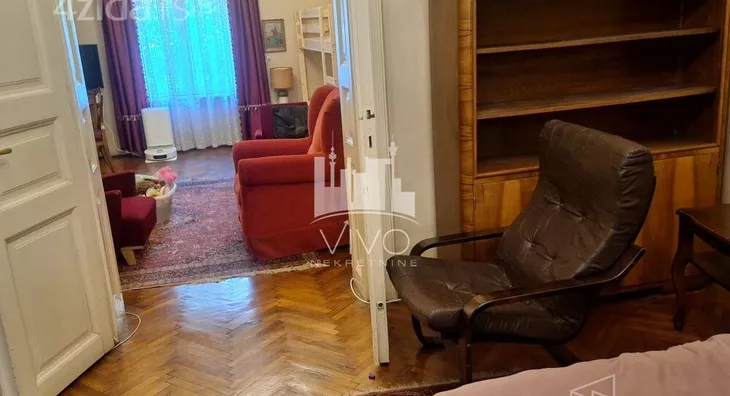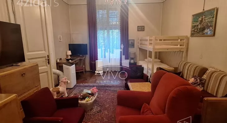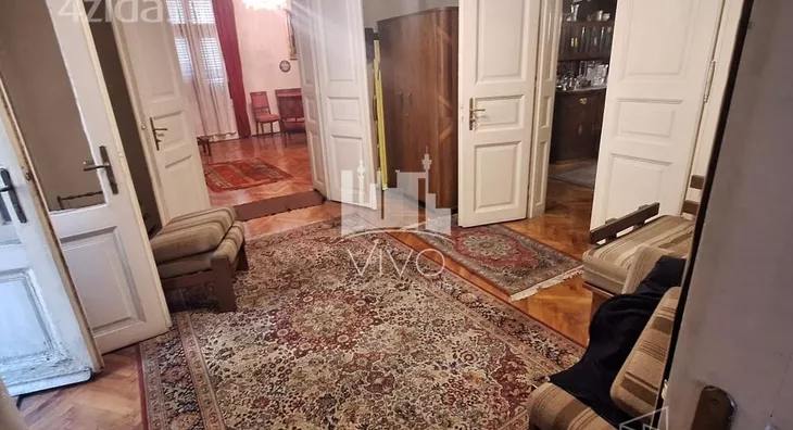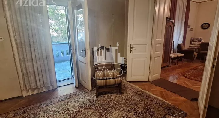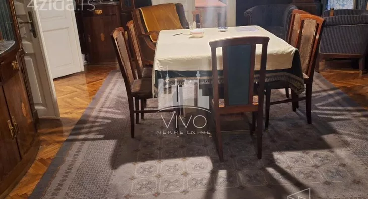 Prodaje se šestosoban stan u predratnoj vili. Stan je sa dva ulaza, trostrano orjentisan, dve terase od kojih je jedna zastakljena. Grejna površina stana je 182m2, površina terasa je 22m2. Salonska visina plafona, funkcionalan raspored, odvojen ekonomski deo, dva mokra čvora. Mogu se formirati dve stambene jedinice. Agencijska provizija 2%
