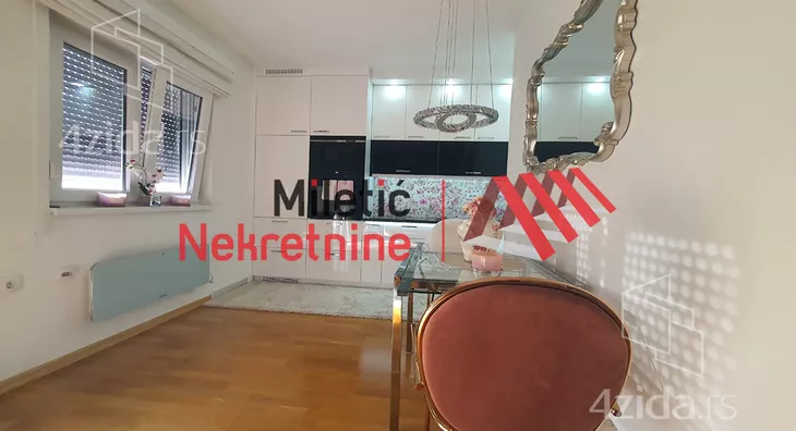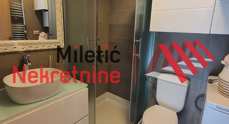 - Opremljenost: Namešteno - TV, klima, veš mašina, kuhinjski elementi, frižider, rerna, plakar, ugradni plakar