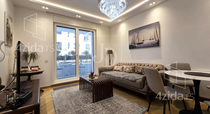 Stan se sastoji od prostranog dnevnog boravka povezanog sa trpezarijom i modernom kuhinjom, iz koje se izlazi na terasu okrenutu ka mirnom delu zgrade. Tu je i udobna spavaća soba, kao i elegantno opremljeno kupatilo. Svaka prostorija pažljivo je osmišljena kako bi pružila maksimalan komfor i funkcionalnost.