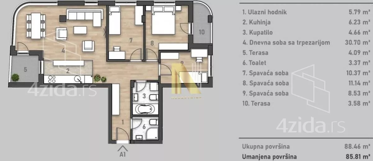 Enterijeri će biti opremljeni premium materijalima, a sama zgrada će biti izgradđena prema najvišim standardima, pružajući udobnost i sigurnost stanovanja.