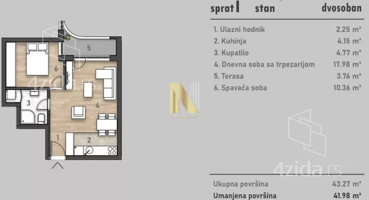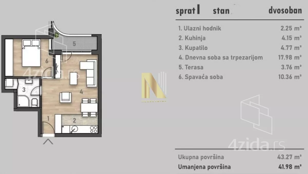 Dvosoban stan na prodaju, Socijalno, 166.400€, 43m²