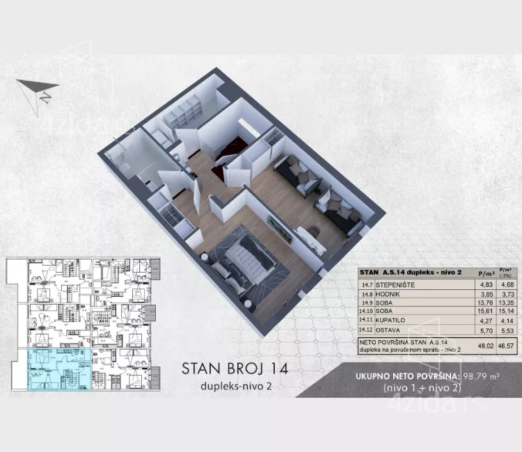 U ponudi stan koji se nalazi u zatvorenom kompleksu koji se sastoji od dve zgrade, sa privatnim dvorištem i podzemnom garažom, što predstavlja idealnu priliku kako za život, tako i za investiciju.