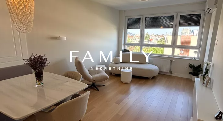 Na prodaju je vrhunski opremljen stan površine 79m², po strukturi trosoban, koji odiše elegancijom i komforom. Stan poseduje kupatilo, zaseban WC, kao i posebnu sobu koja je uređena kao garderober.
