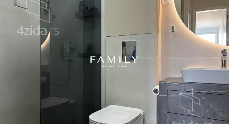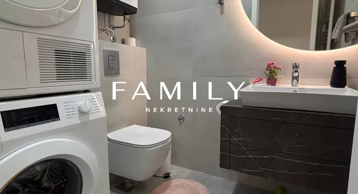 - Opremljenost: Namešteno - TV, klima, veš mašina, kuhinjski elementi, sudo mašina, frižider, zamrzivač, šporet, rerna, ležaj, plakar, ugradni plakar