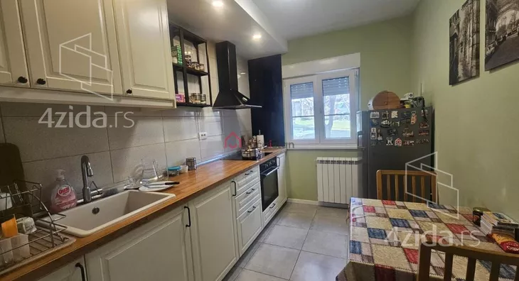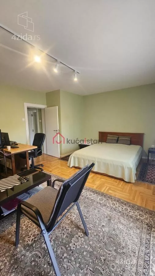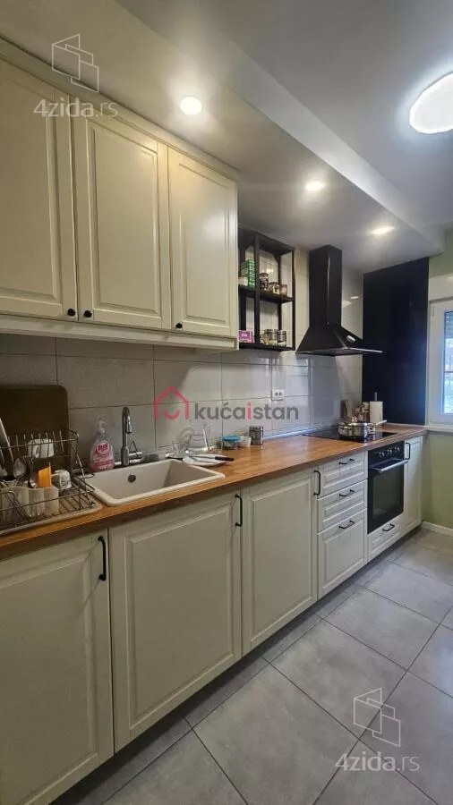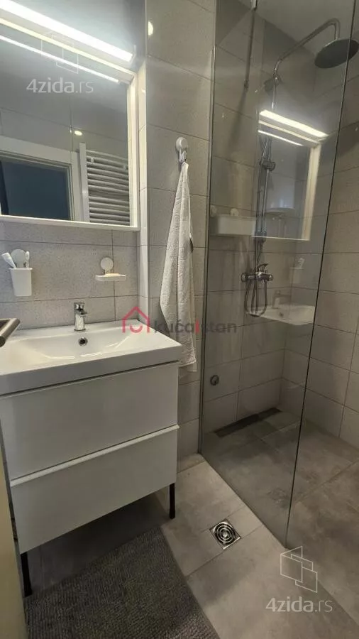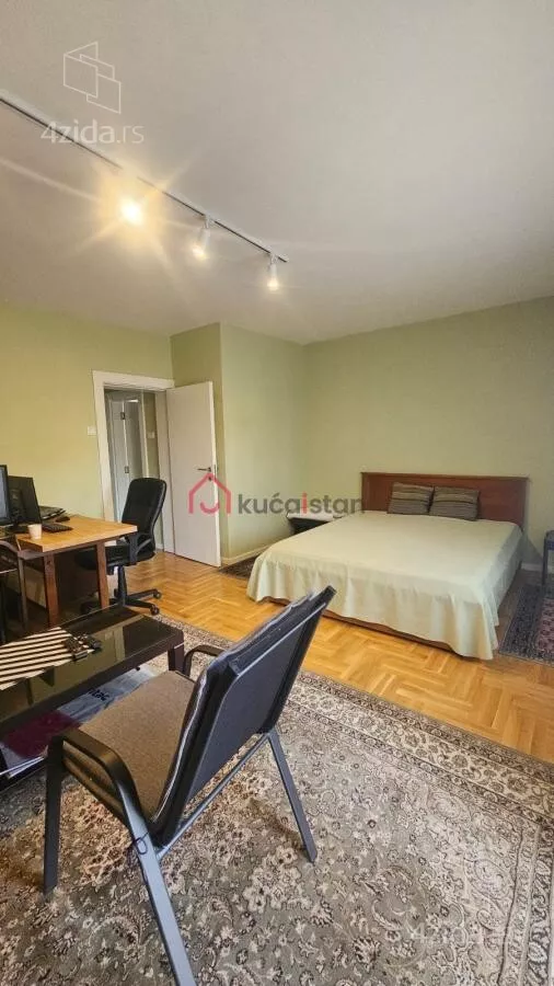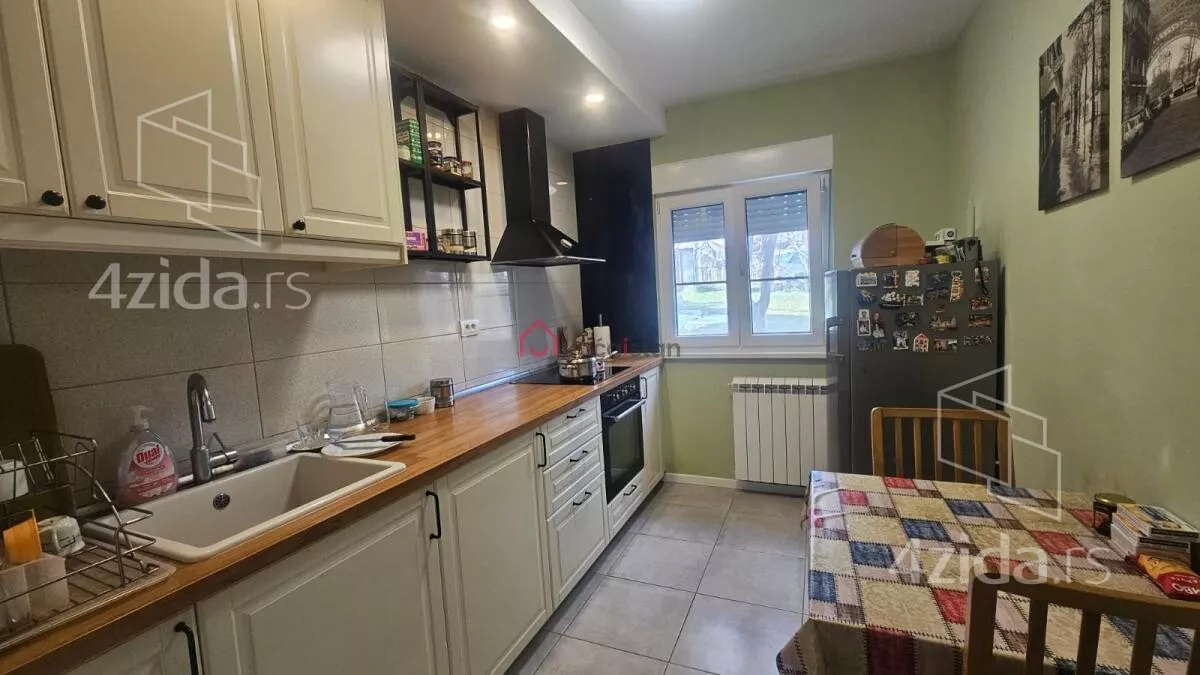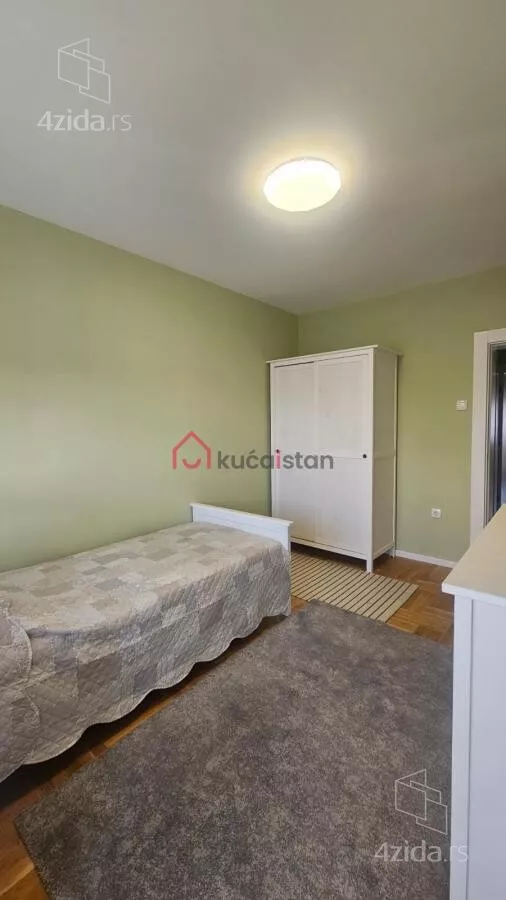 - Opremljenost: Namešteno - internet, interfon, TV, klima, veš mašina, sudo mašina, frižider, rerna, ležaj, plakar, kanalizacija