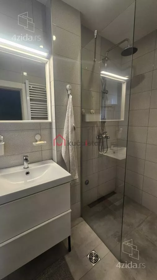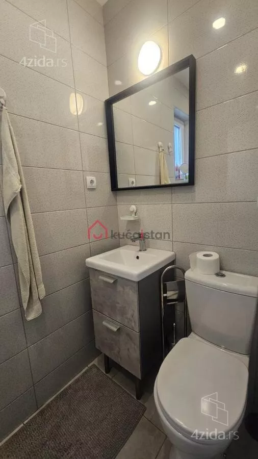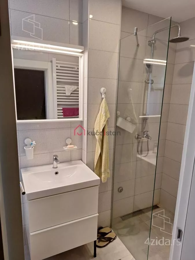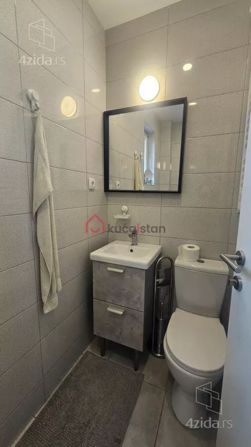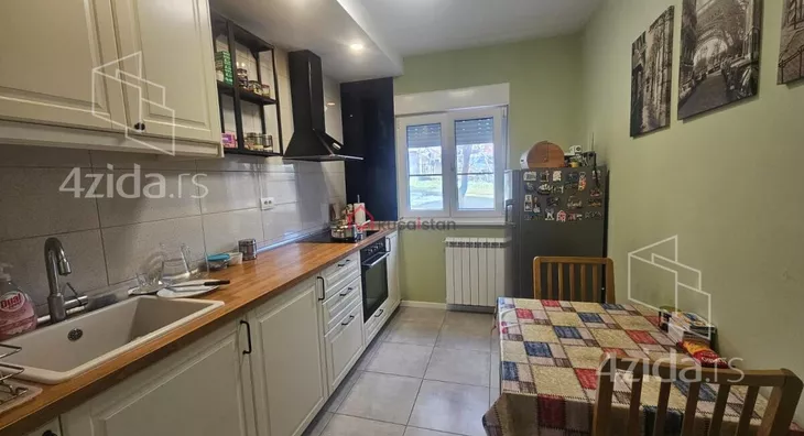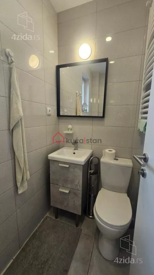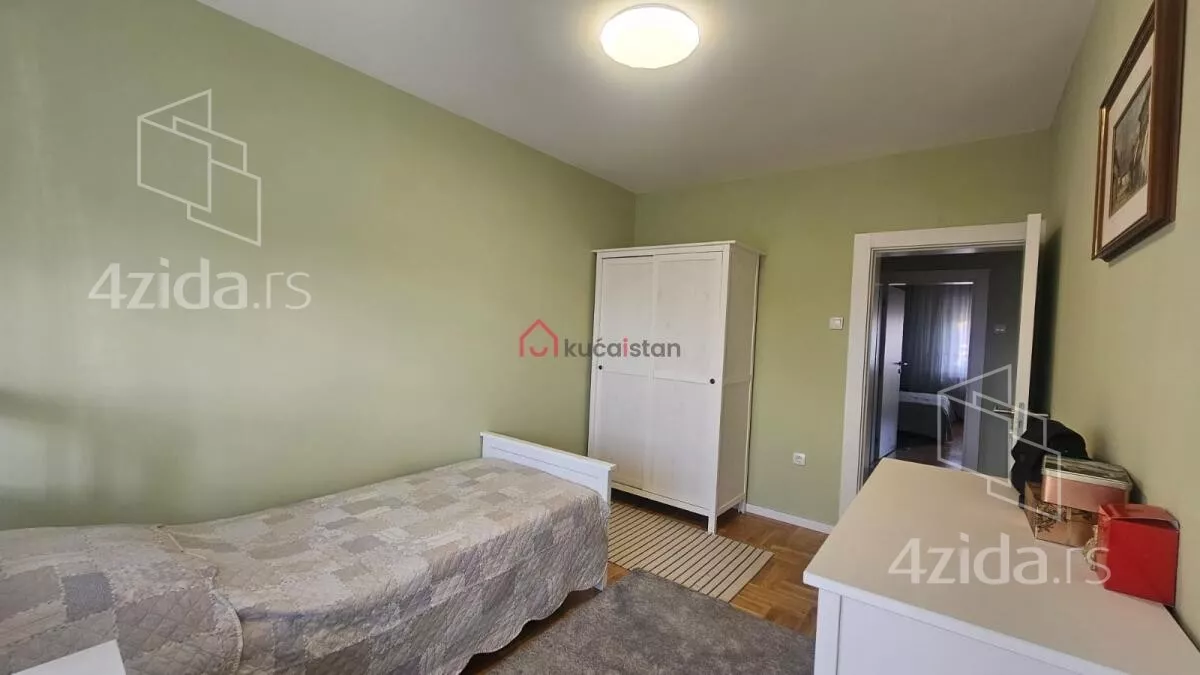 - Opremljenost: Namešteno - internet, interfon, TV, klima, veš mašina, sudo mašina, frižider, rerna, ležaj, plakar, kanalizacija