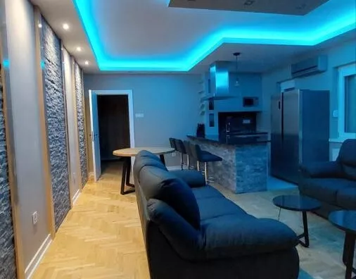 LUX opremljen I neodoljiv stan u jednom od najpoželjnijih delova Novog Sada,stan za uživanje na Tatarskom brdu. Stan se sastoji od dnevnog boravka sa otvorenom kuhinjom i trpezarijom,spavaće sobe i radne sobe. Radna soba je zvučno izolovana i idealna je za one koji traze mir i tišinu za nesmetan rad. Dnevni boravak je savršeno uređen,ima šank sa stolicama nalik barskim I lajtšou svetla (8 boja) dok u kuhinji koja je opremljena najsavremenijom tehnikom vodećih svetskih proizvođača,možete da uživate u kulinarskim izazovima.