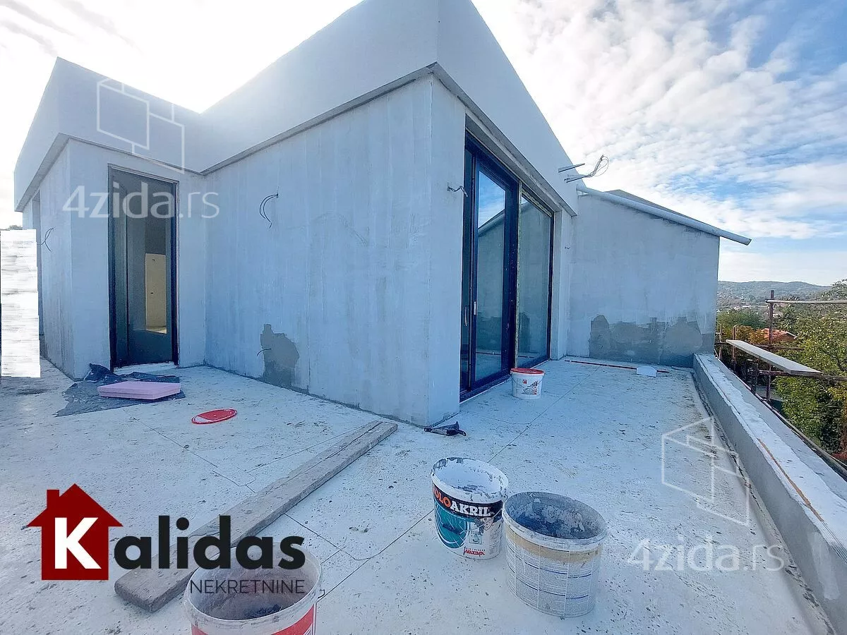 SREMSKA KAMENICA, ŠESTOSOBAN STAN - nudimo vam izuzetnu nekretninu koja će vas kupiti svojim fantastičnim položajem sa pogledom na grad. U pitanju je vila sa svega tri stana. Prvoklsana gradnja i oprema se podrazumevaju. Sam idejni projekat stana je odličan, sa fantastičnim dnevnim boravkom od nekih 30 m2, koji ima staklene portale na dve strane što garantuje obilje svetlosti. Spavaći deo se nalazi na donjoj etaži i okrenut je ka dvorištu, dok dnevni boravak gleda ka Dunavu i Novom Sadu. Odatle se izlazi na terasu od 65 m2 koja se pruža oko celog stana i koju možete urediti po svojoj želji. Ono što će vas svakako kupiti jeste krovna terasa od 70 m2 - ovde pustite mašti na volju. Uz stan se dobijaju tri garažna mesta, ostava i parking mesto ispred zgrade. Useljenje se očekuje do kraja godine. Iskoristite priliku i pronađite svoj savšeni dom! Pozovite za više informacija, kao i za razgledanje stana.Topla preporuka.
