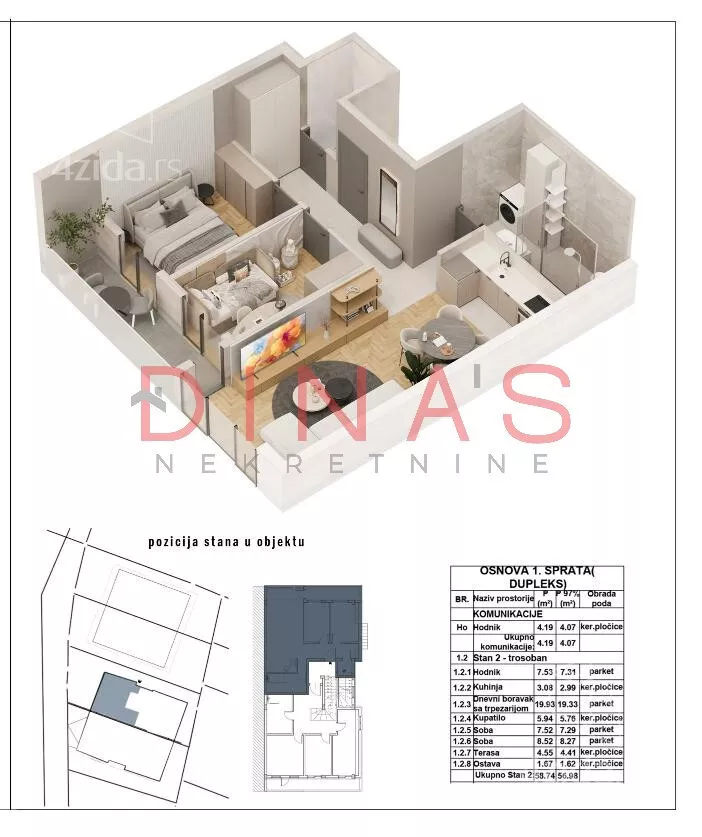 Trosoban stan na prodaju, Sremska Kamenica, 145.000€, 61m²