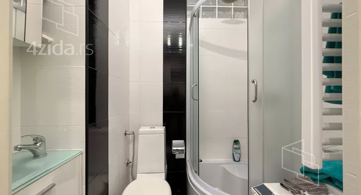 - Opremljenost: Namešteno - TV, klima, veš mašina, kuhinjski elementi, mikrotalasna rerna, šporet, ležaj, plakar, ugradni plakar
