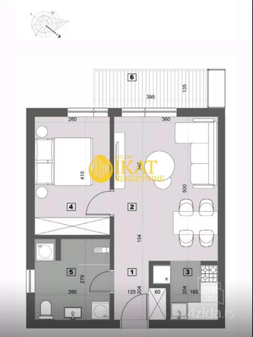 Stan je površine 49m2 i po strukturi je jednoiposoban.