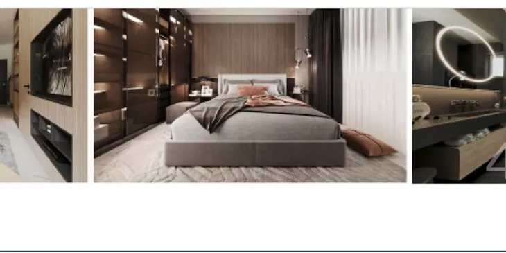 Sastoji se od kombinovane prostorije sa kuhinjom, tri spavaće sobe, kupatila, perionice i toaleta, terase.