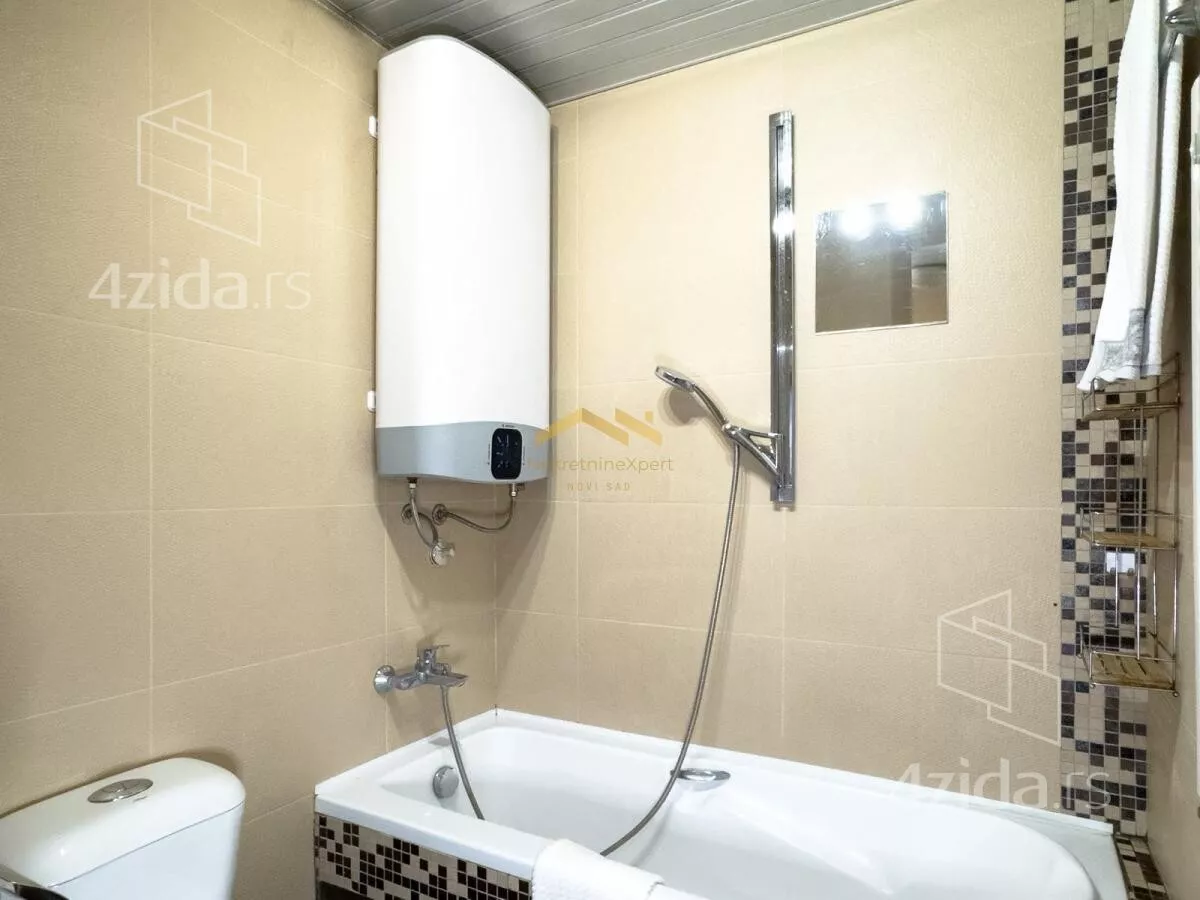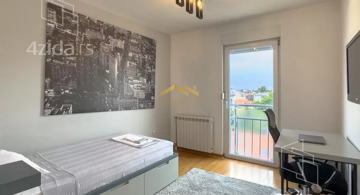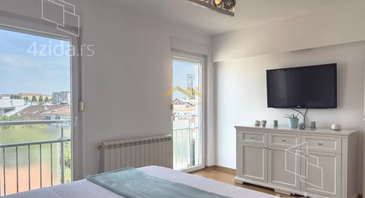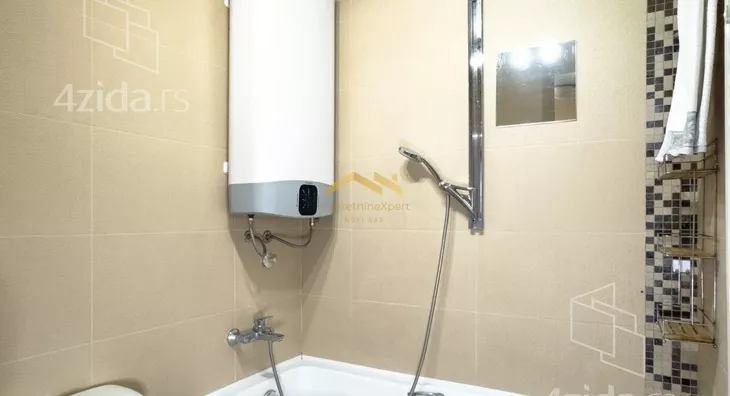 - Opremljenost: Namešteno - internet, interfon, TV, klima, veš mašina, sudo mašina, frižider, rerna, ležaj, plakar, kanalizacija